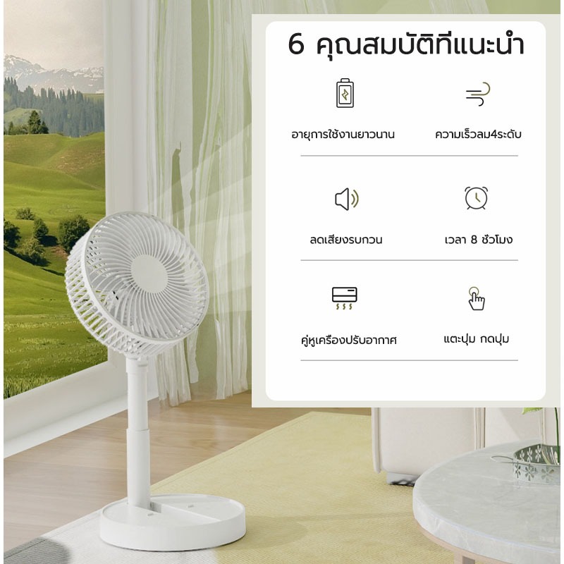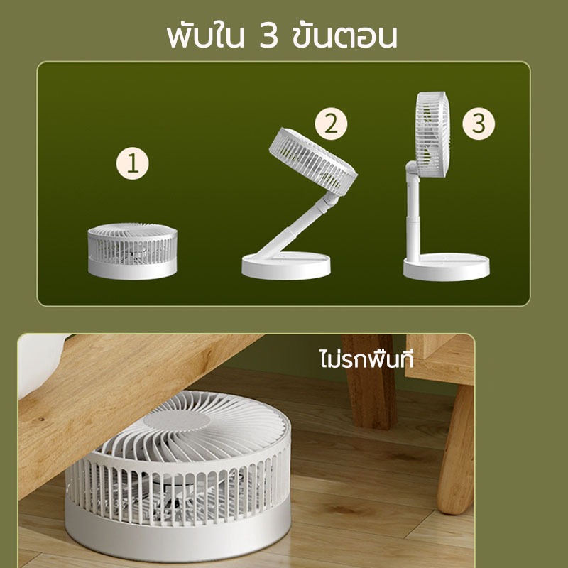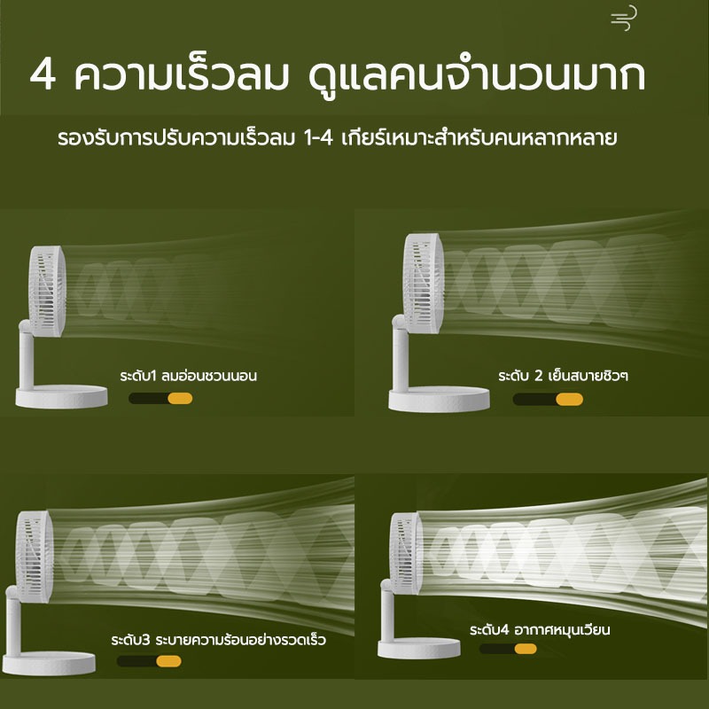 ... ง 90° แรงดัน การชาร์จ : DC 5V/0.8A จำนวนใบพัด : 7 ใบ พร้อมตะแกรงถี่ป้องกันเด็กเอานิ้วแหย่พัดลม วัสดุสินค้า : วัสดุ ABS แข็งแรง ทนทาน อายุการใช้งานยาวนาน เกียร์ลม: 4 เกียร์ ปรับปริมาณลมได้ 4 ระดับ: เกียร์แรก: ลมเบา ๆ เกียร์สอง: นุ่มนวลและแข็งแรง เกียร์สาม: ลมแรง เกียร์สี่: พายุ กล่องบรรจุ :พัดลม+Manual + สายชาร์จ Android (Type-C) ข้อได้เปรียบ 1. ฝาครอบตาข่ายออกแบบเป็นตะแกรงซึ่งสามารถถอดประกอบและทำความสะอาดได้ง่าย 2. แบตเตอรี่แบบชาร์จไฟขนาดใหญ่, อายุการใช้งานแบตเตอรี่ที่ยาวนาน 3. ด้วยฟังก์ชั่นจับเวลา, เวลาหลายเกียร์, เพื่อตอบสนองความต้องการที่หลากหลายของคุณ, 4. มอเตอร์ไร้แปรงถ่าน ให้พลังแรง กระจายความร้อนเร็ว เสียงรบกวนต่ำ 5.โอกาสต่างๆ: วางบนโต๊ะ+ใช้กับเครื่องปรับอากาศ + ขณะทำอาหาร ทั้งหมดสามารถ 6.รองรับการชาร์จ USB ต่างๆ(ชาร์จ ธนาคารพลังงาน สมุดบันทึก คอมพิวเตอร์ ) รองรับการเป่าขณะชาร์จ ข้อสังเกต: 💌1. สินค้าทั้งหมดในร้านอยู่ในกรุงเทพฯ ประเทศไทย และจะจัดส่งภายใน 24 ชั่วโมง และคาดว่าจะถึงภายใน 1-3 วัน 💌2. หากสินค้าเสียหาย โปรดถ่ายวิดีโอตั้งเเต่เกะสินค้าและติดต่อฝ่ายบริการลูกค้า ร้านค้าสามารถคืนหรือเปลี่ยนสินค้าให้กับลูกค้าได้