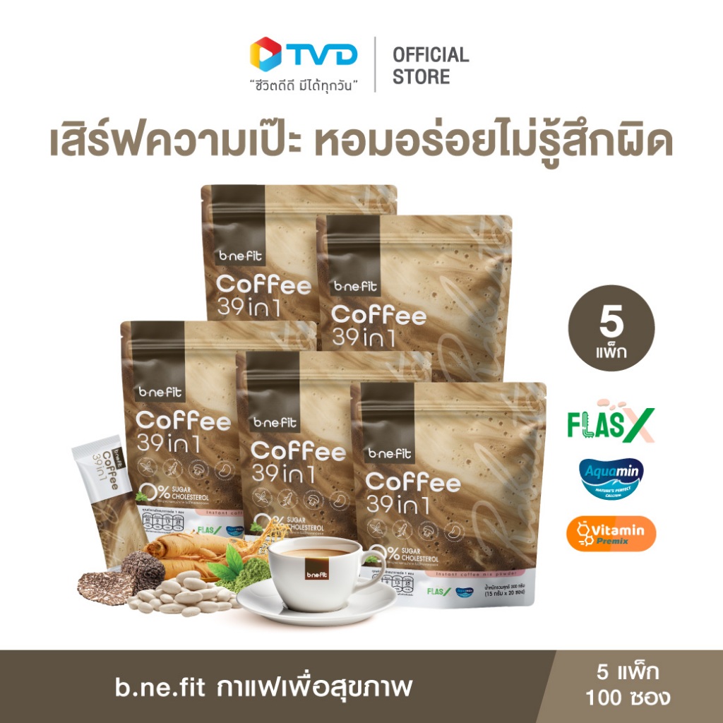 b.ne.fit Coffee บี.นี.ฟิต คอฟฟี่ กาแฟคุมหิว ปรับสมดุลระบบขับถ่าย 5 แพ็ค 100 ซอง โดย TV Direct