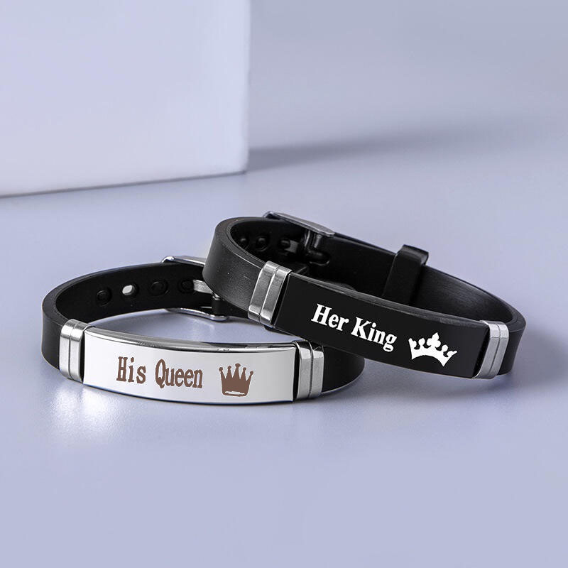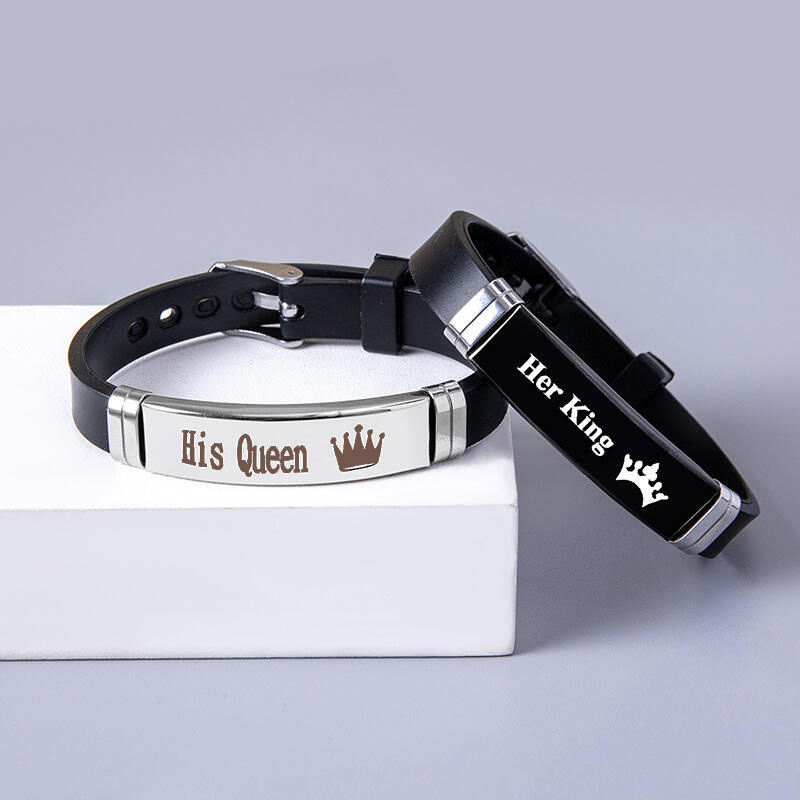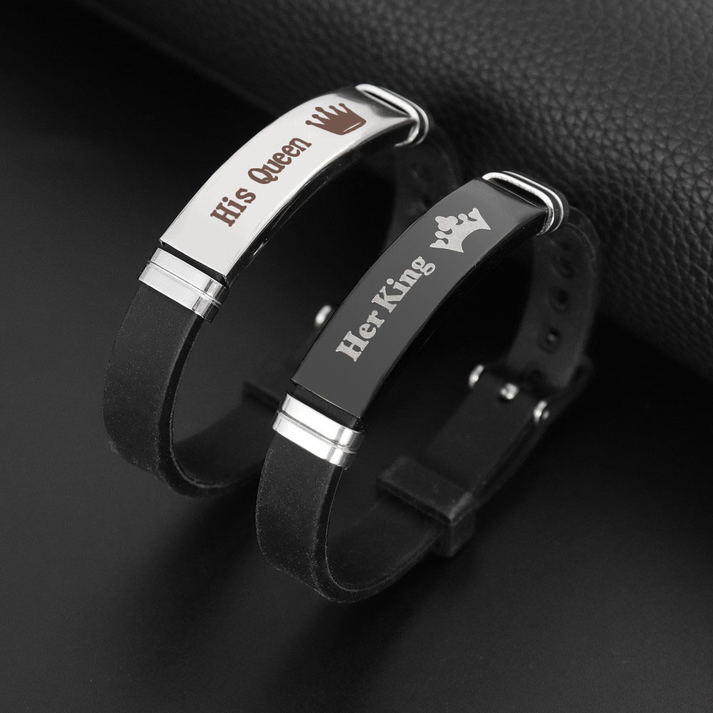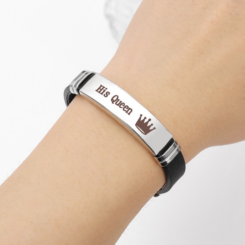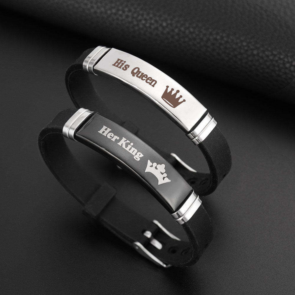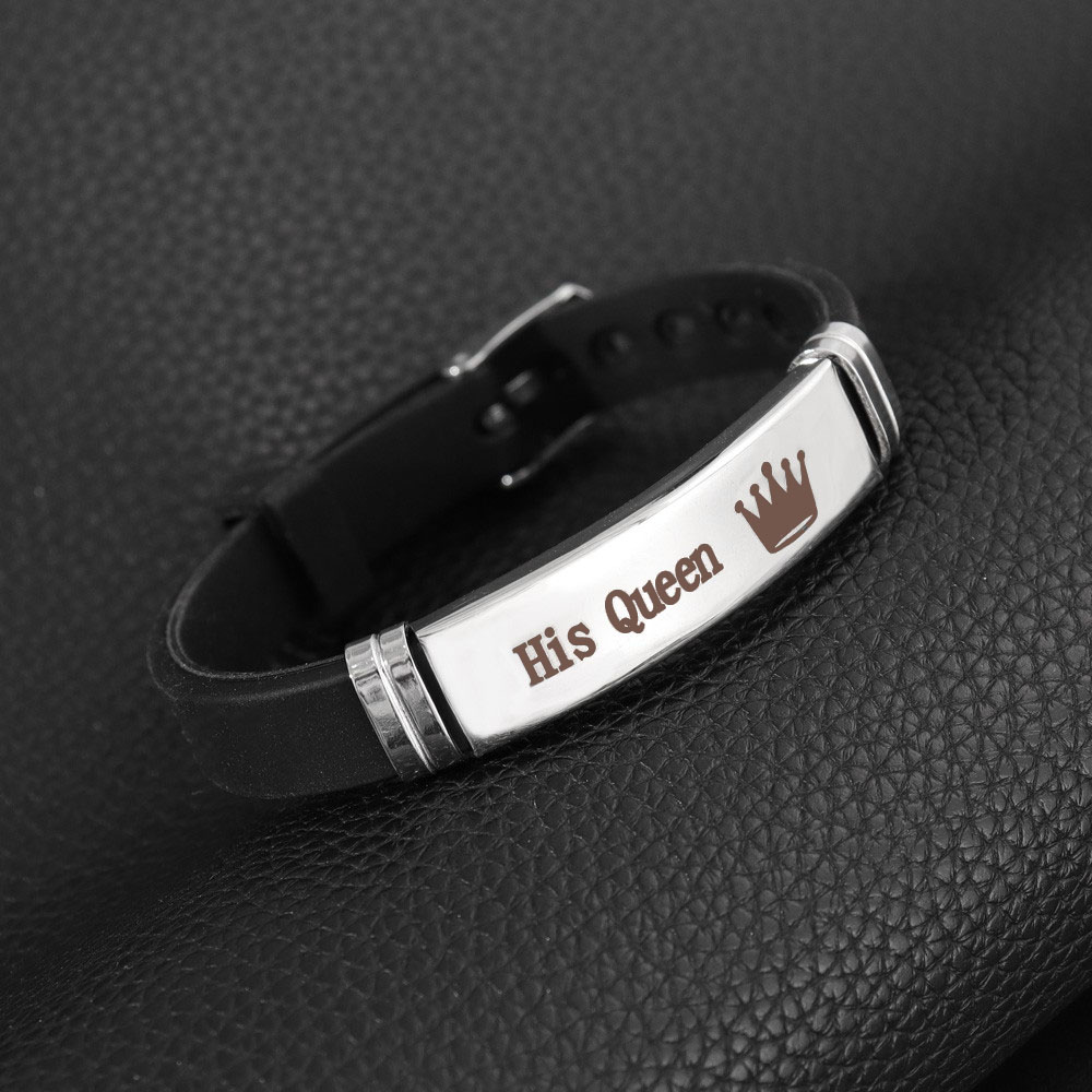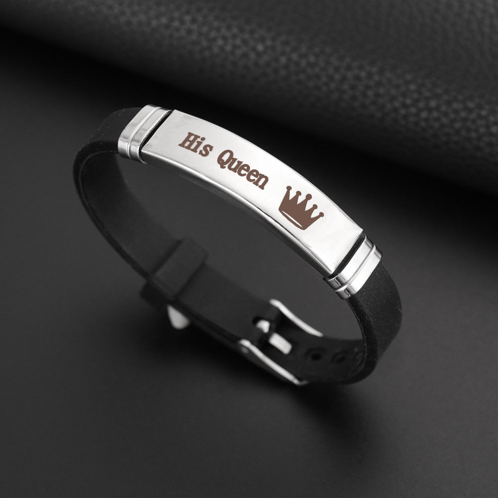 เครื่องประดับ สร้อยข้อมือสแตนเลส จี้มงกุฎ และตัวอักษร Her King His Queen แฟชั่นคู่รัก สําหรับผู้ชาย