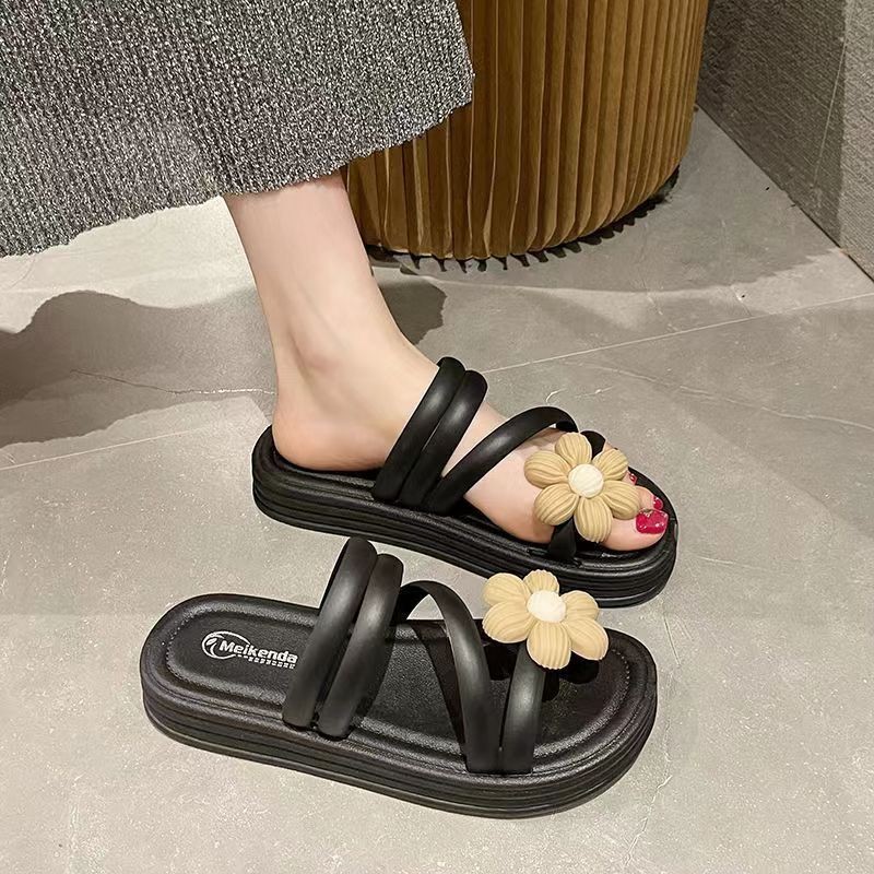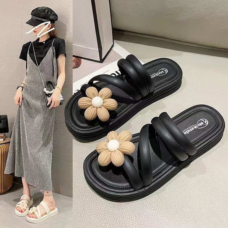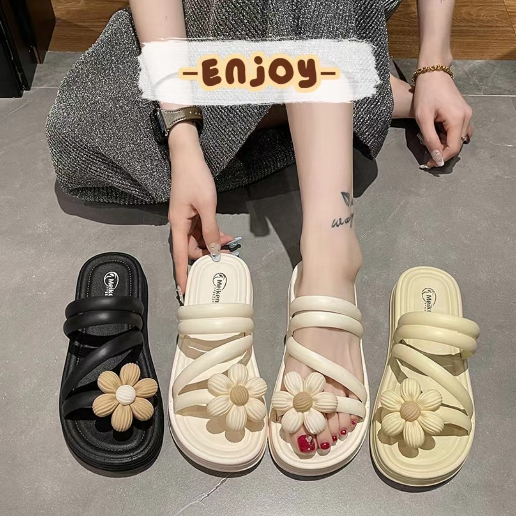 🍓EnJoy🍓 พร้อมส่ง (LT-MKD) รองเท้าแตะสวม ดีเทลดอกทานตะวัน สายคาดติดกัน