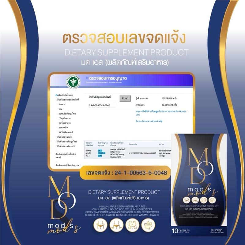 ยาลดน้ำหนัก #มดเอส ลดน้ำหนัก ลดความอ้วน ยาลดมดเอส mods 💙👑 ✨ ลดน้ำหนักกระชับสัดส่วน ✨ คุมหิวอิ่มนาน ✨ สลายไขมันเผาผลาญไขมัน ✨ ปรับระบบการย่อยอาหาร 1 กล่องมี 10 แคปซูล ⛅️ เลขที่จดแจ้ง/อย. 1803715104284
