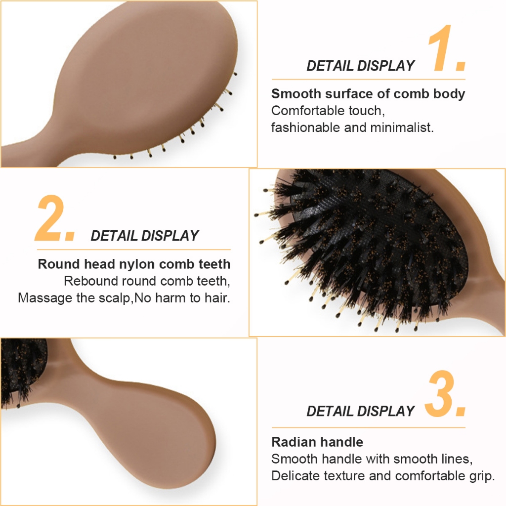 คุณสมบัติ 🔎หวีขนหมูป่าแนะนำหวีตอนผมแห้ง 🔎หวีนวดศีรษะ มีรูระบายอากาศ 🔎ช่วยลดผมขาดหลุดร่วงได้ 🔎ทำจากขนหมูป่าเเท้ 🔎หวีแปรงผมนวดศีรษะช่วยลดการบาดเจ็บของหนังศีรษะขณะหวี วัสดุ: ABS + ขนแปรง + ไนลอน ขนาด: 6*14cm/7*22cm แพคเกจรวม: แปรงผม 1 * แปรงผม