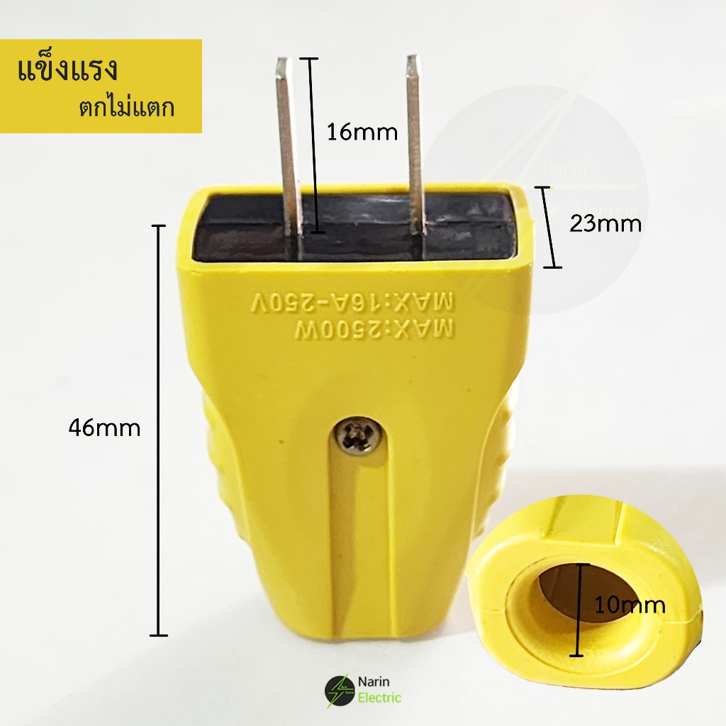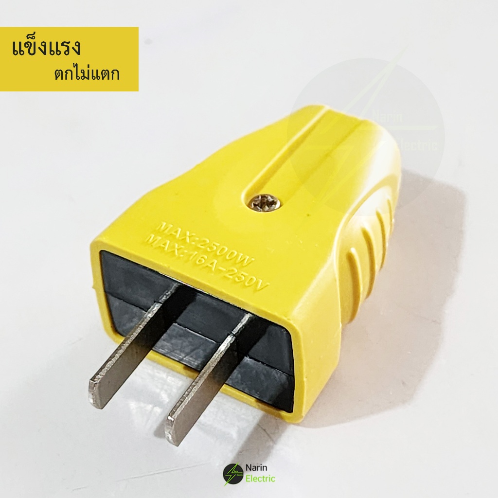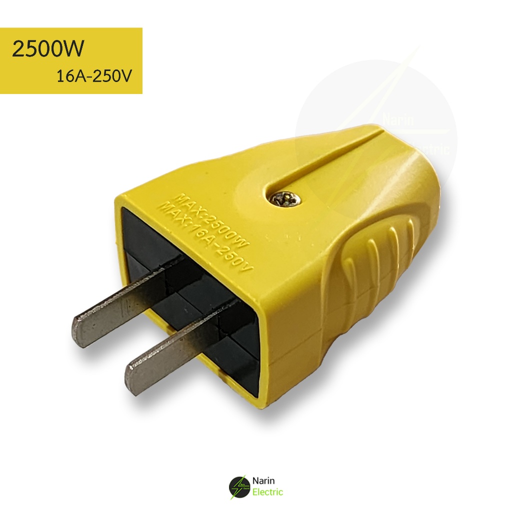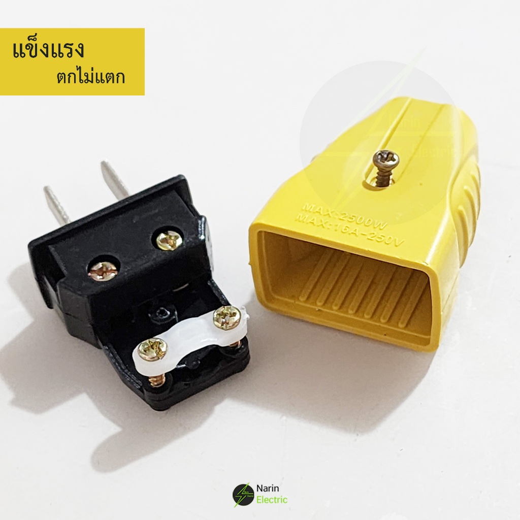 ปลั๊กไฟตัวผู้ 2 ขาแบน 16A / 250V ตกไม่แตกมีตัวรัดสายเข้าสายแน่นไม่หลุดง่าย