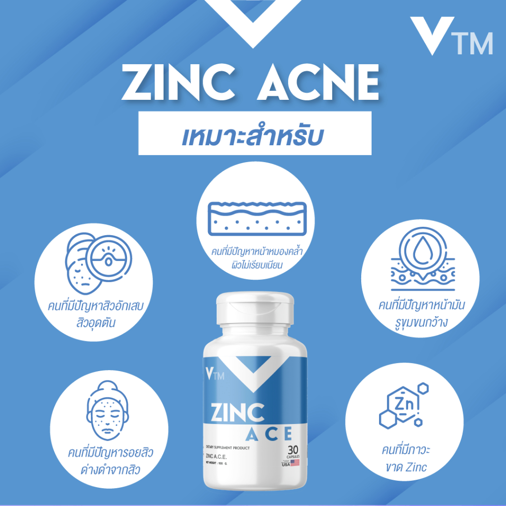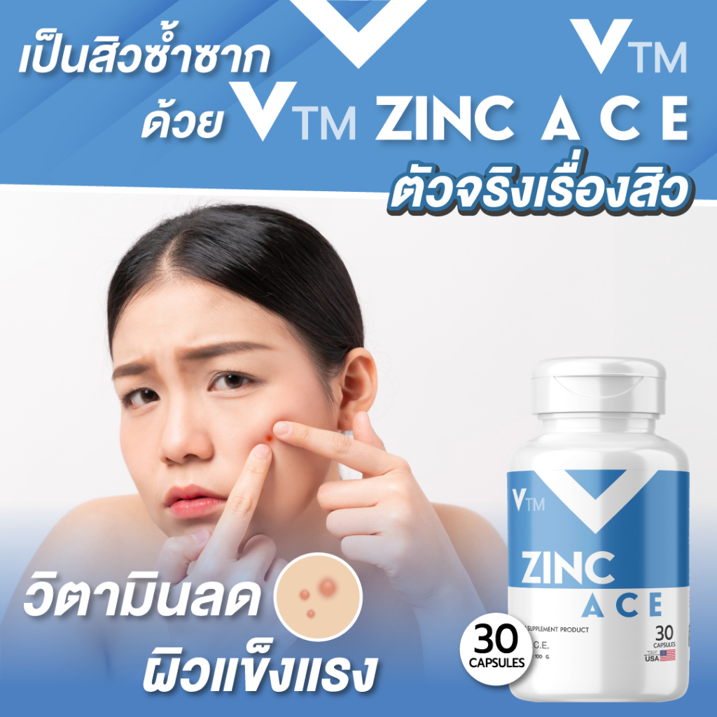 VTM Zinc A C E วิตามินซิงค์ต้านสิว ผิวใส ผิวแข็งแรง