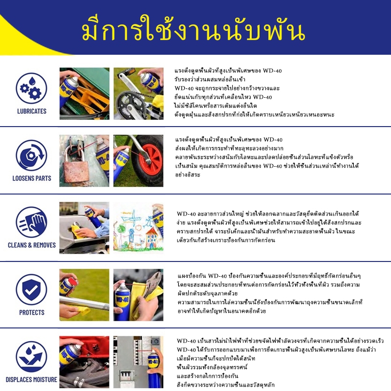 ... ของเรา โปรดให้คะแนนเรา 5 ดาว ขอบคุณมาก 💪คุณสมบัติ: 👉 ผลิตภัณฑ์ปกป้องโลหะจากสนิมและการกัดกร่อน แทรกซึมส่วนที่ติดอยู่ ไล่ความชื้น และหล่อลื่นได้เกือบทุกอย่าง 👉 ขจัดคราบไขมัน สิ่งสกปรก และอื่นๆ ออกจากพื้นผิวส่วนใหญ่ 👉 ขับความชื้นออกไป 👉 ปกป้องพื้นผิวโลหะ 👉 ปลดปล่อยกลไกที่เหนียวเหนอะหนะ 👉 ขจัดคราบไขมัน สิ่งสกปรก และคราบสกปรก 👉 หล่อลื่น 👉 สำหรับยานยนต์ อุตสาหกรรม บ้านและสวน กีฬาและสันทนาการ 📝คำอธิบาย: 🔹 ความจุ: กระป๋องสเปรย์ 11.2 ออนซ์ / 333 มล 📦แพ็คเกจรวม: 🔹 1*WD-40 น้ำมันอเนกประสงค์ ❗หมายเหตุ: - โปรดให้ข้อผิดพลาด 1-2 ซม. เนื่องจากการวัดด้วยตนเองตรวจสอบให้แน่ใจว่าคุณไม่ทราบก่อนสั่งซื้อ - เนื่องจากความแตกต่างระหว่างจอภาพที่ต่างกันรูปภาพอาจไม่สะท้อนสีจริงของรายการ