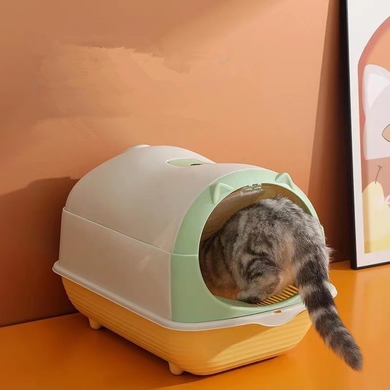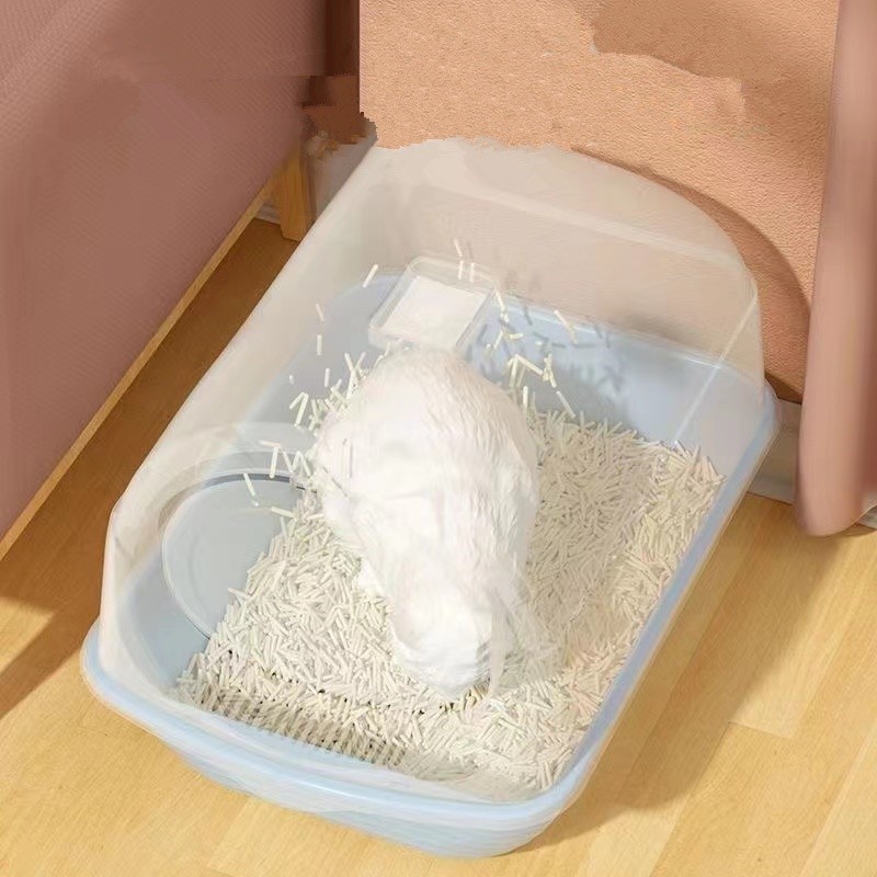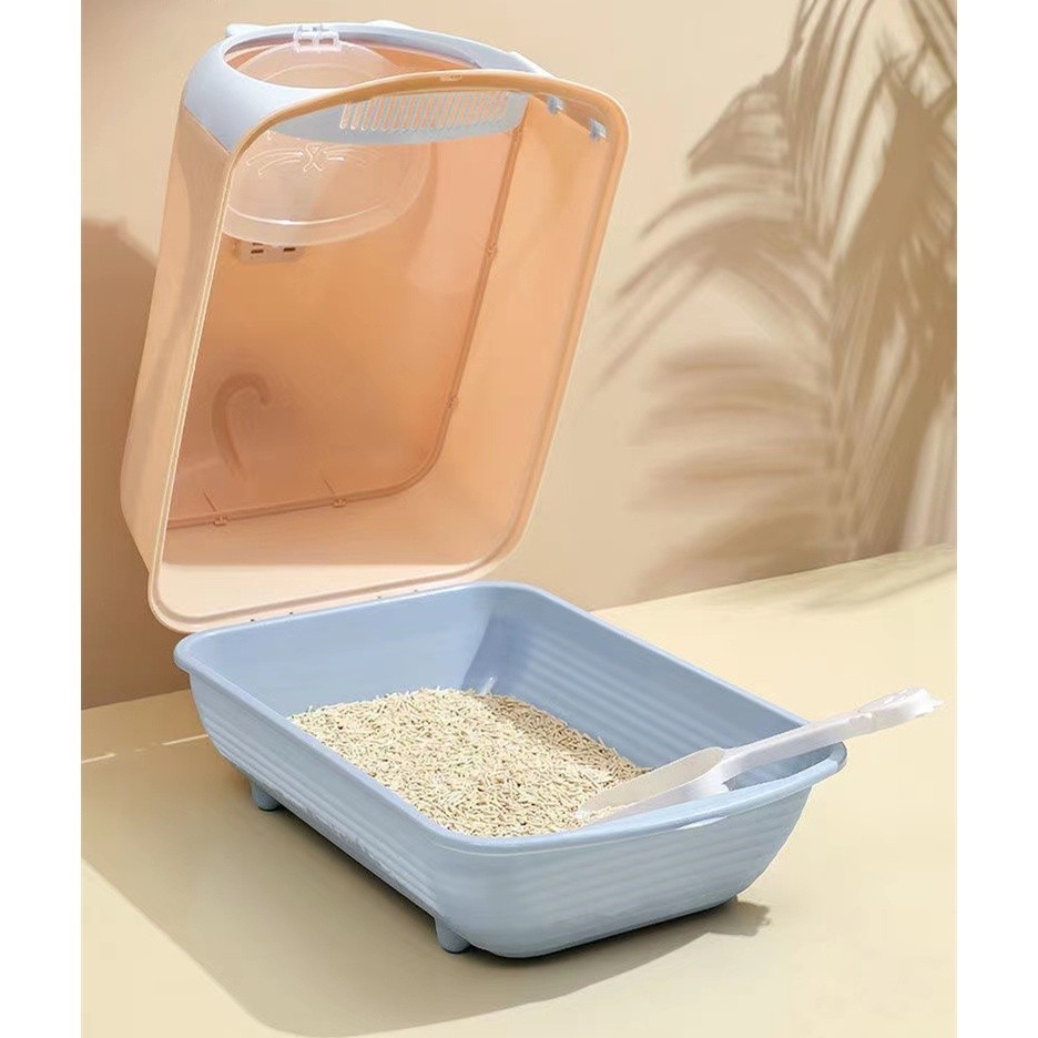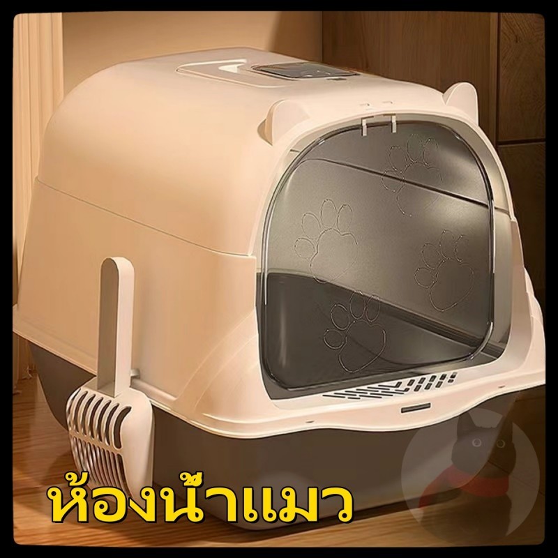 ห้องน้ำแมว กระบะทรายแมวขนาดใหญ่ กะบะทรายแมว/กระบะทรายแมวพกพา แถมพลั่วตักทรายแมวและถุงดับกลิ่น แยกกลิ่น