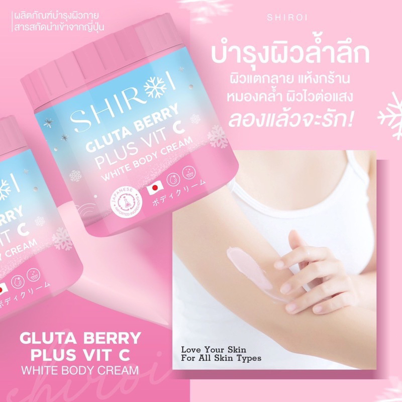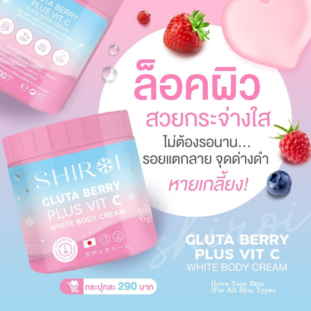 ครีมชิโรอิ ทาผิวกาย ครีม SHIROI GLUTA BERRY PLUS VIT C กลูต้าชิโรอิทาผิว กลูต้าเบอรี่พลัส วิตซี ผิวกระจ่างใส ทาผิว