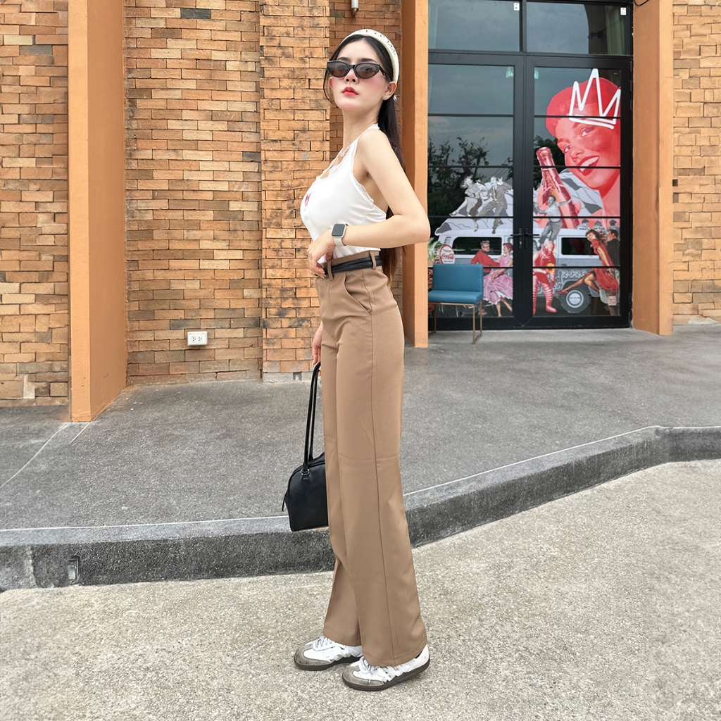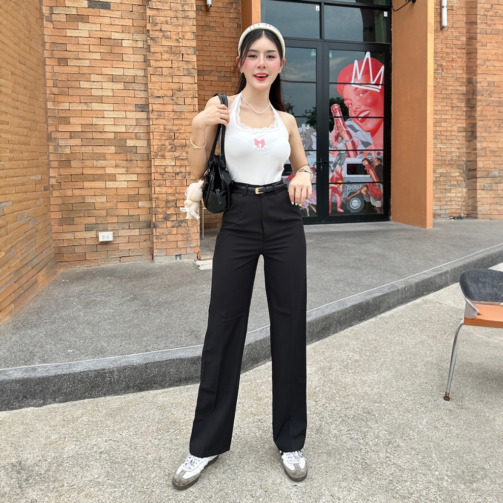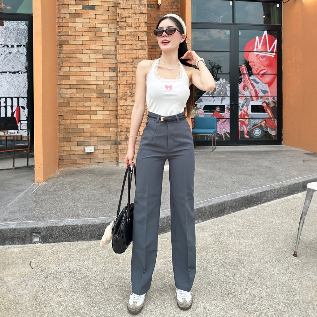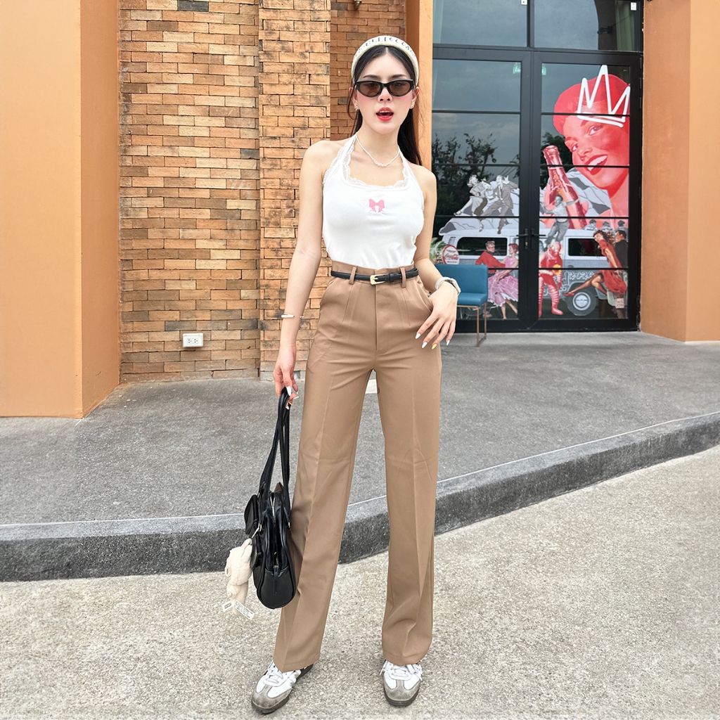 🌈MesubShop🌈กางเกงขากระบอก กางเกงเอวสูง เก็บพุง 💖 กางเกงใส่ทำงาน พรางหุ่น กระเป๋าใช้งานได้จริง รุ่น กางเกงa80