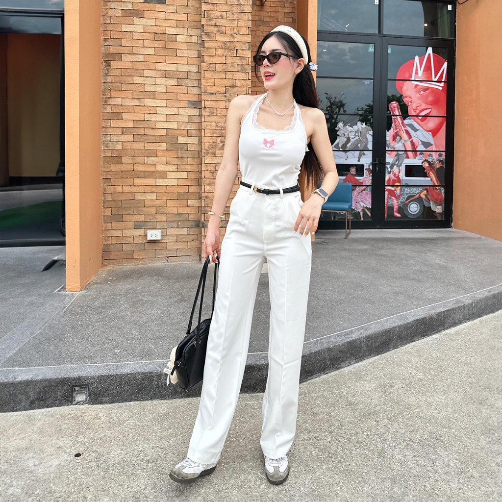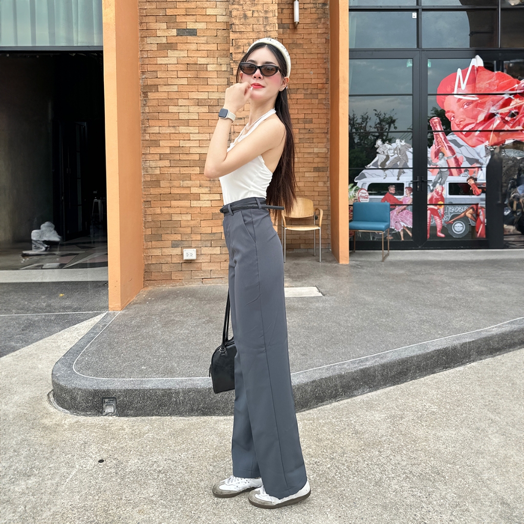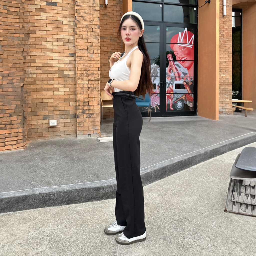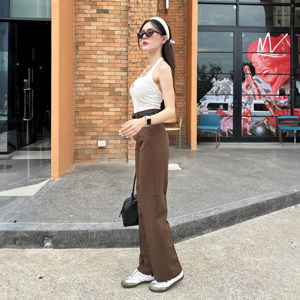🌈MesubShop🌈กางเกงขากระบอก กางเกงเอวสูง เก็บพุง 💖 กางเกงใส่ทำงาน พรางหุ่น กระเป๋าใช้งานได้จริง รุ่น กางเกงa80