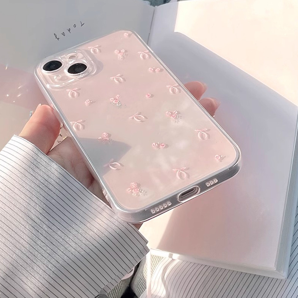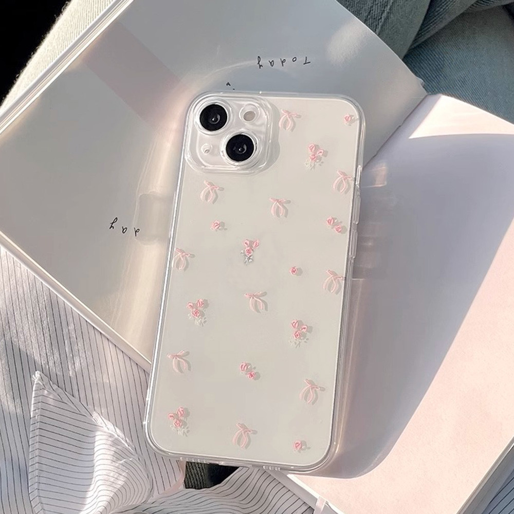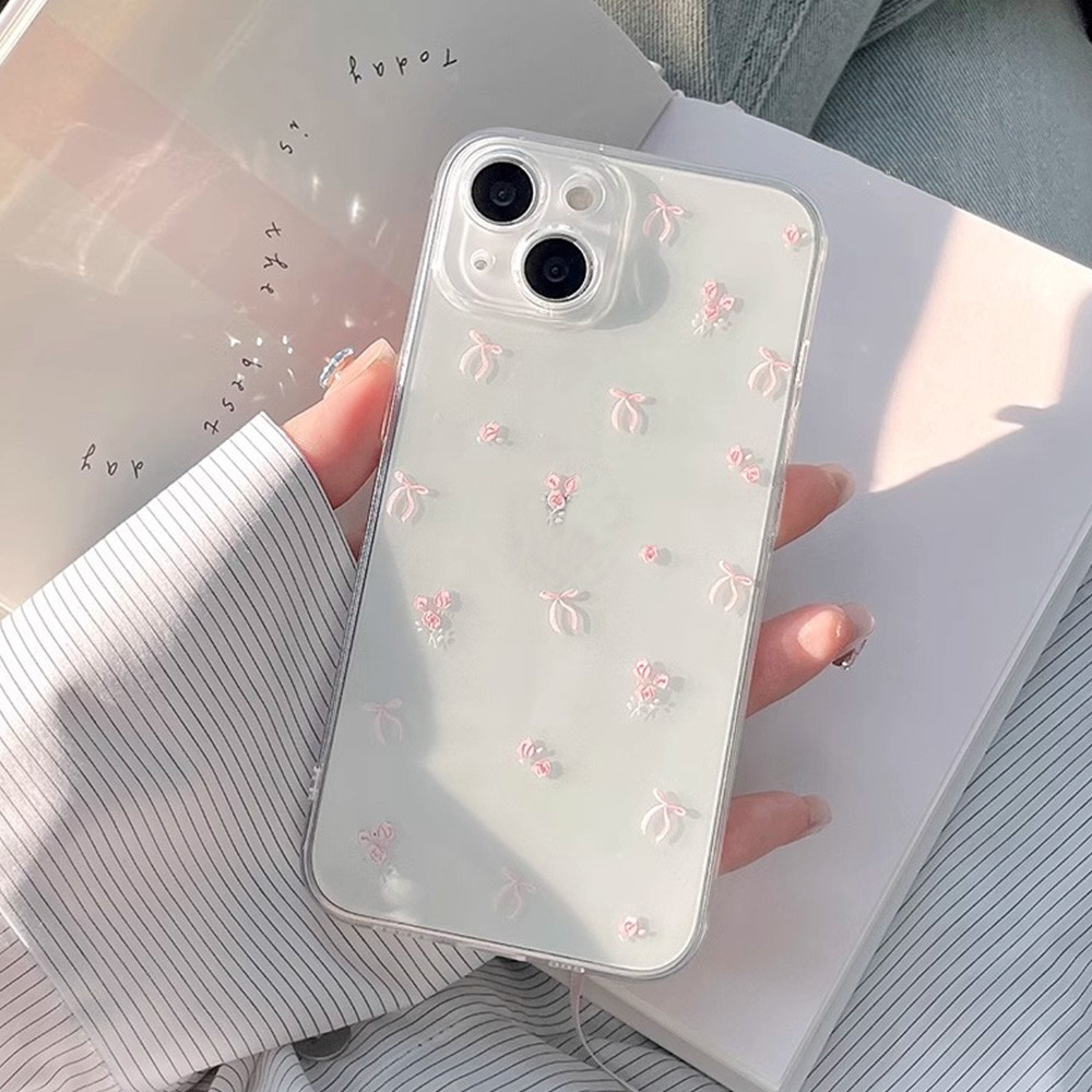 Girly สีชมพู Bowknot Clear เคสโทรศัพท์สําหรับ Iphone 11 15 16 Pro Max 16plus 12 13 14 Promax X XS XR 7 8Plus Ultra-Thin Dirt ทนนุ่มโทรศัพท์ฝาหลัง
