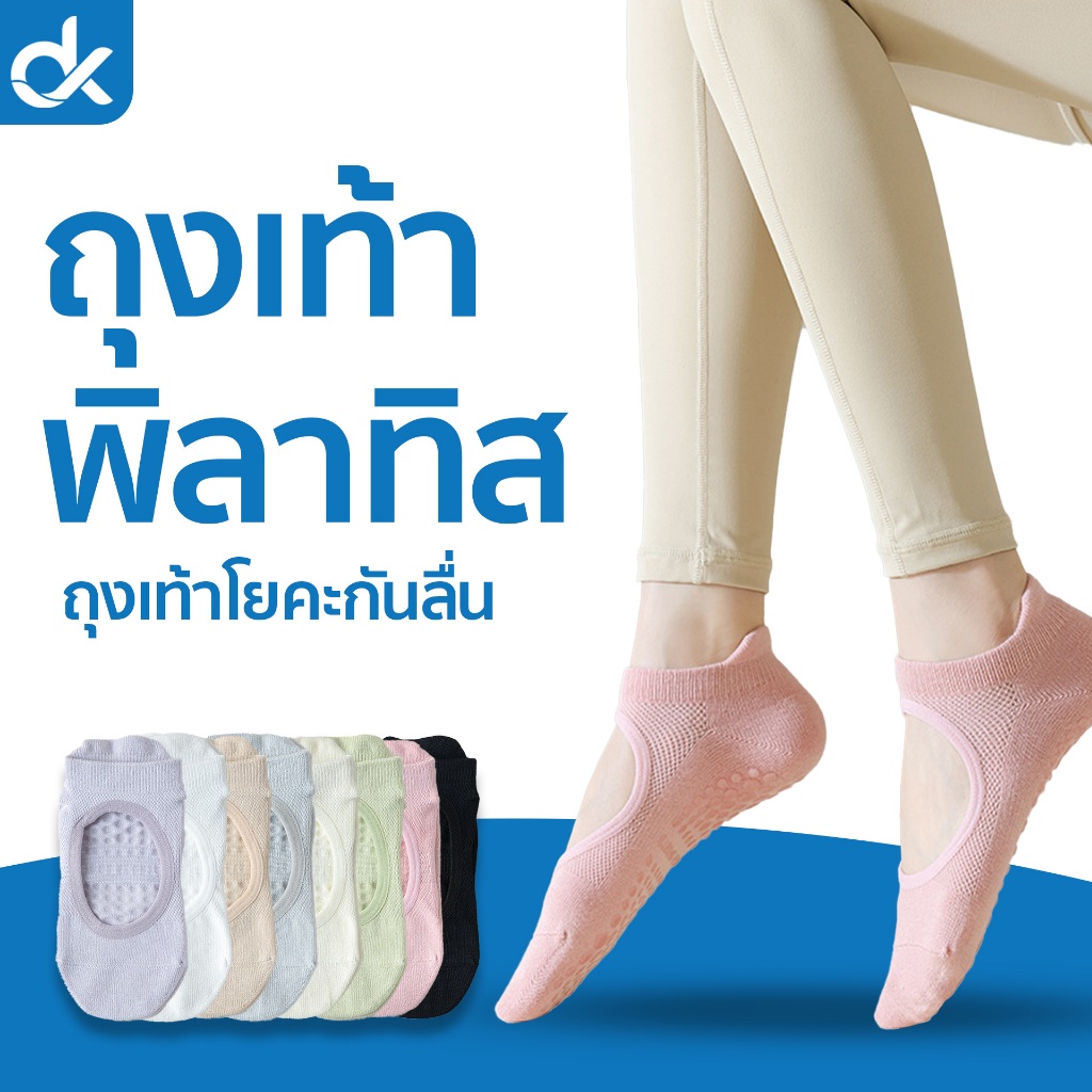 DK ถุงเท้าพิลาทิส ถุงเท้าโยคะกันลื่น ดีไซน์เปิดหลังเท้า ผ้าคอตตอน ไร้ตะเข็บ ฟรีไซส์
