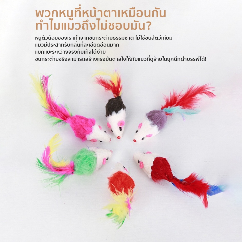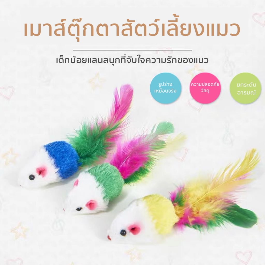 หนูปลอม สีสุ่ม คลายเครียดแมว ขนไก่แมว ของเล่นแมว