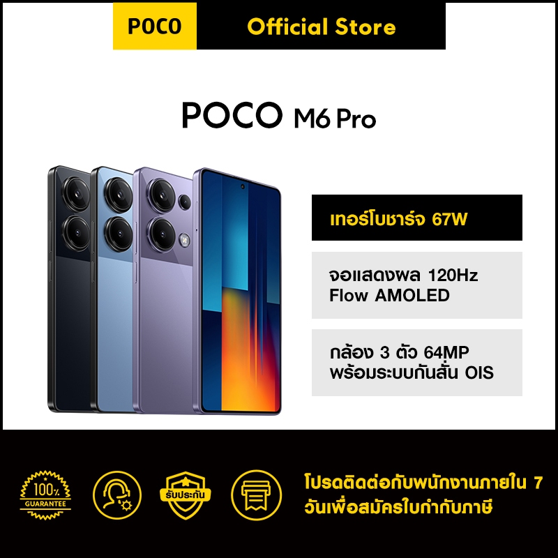 POCO M6 Pro 8GB+256GB |ชิปเซ็ท MediaTek Helio G99-Ultra จอตอบสนองไว 120Hz กล้อง 64MP รับประกัน 15 เดือน