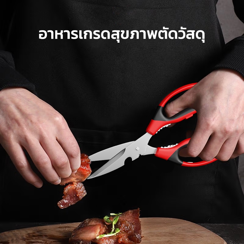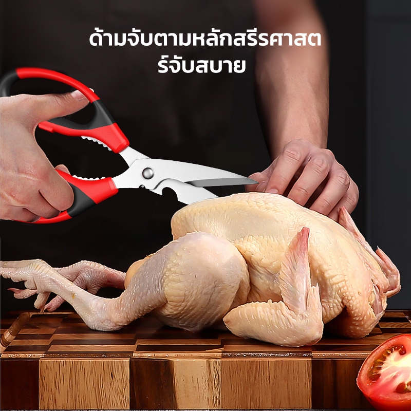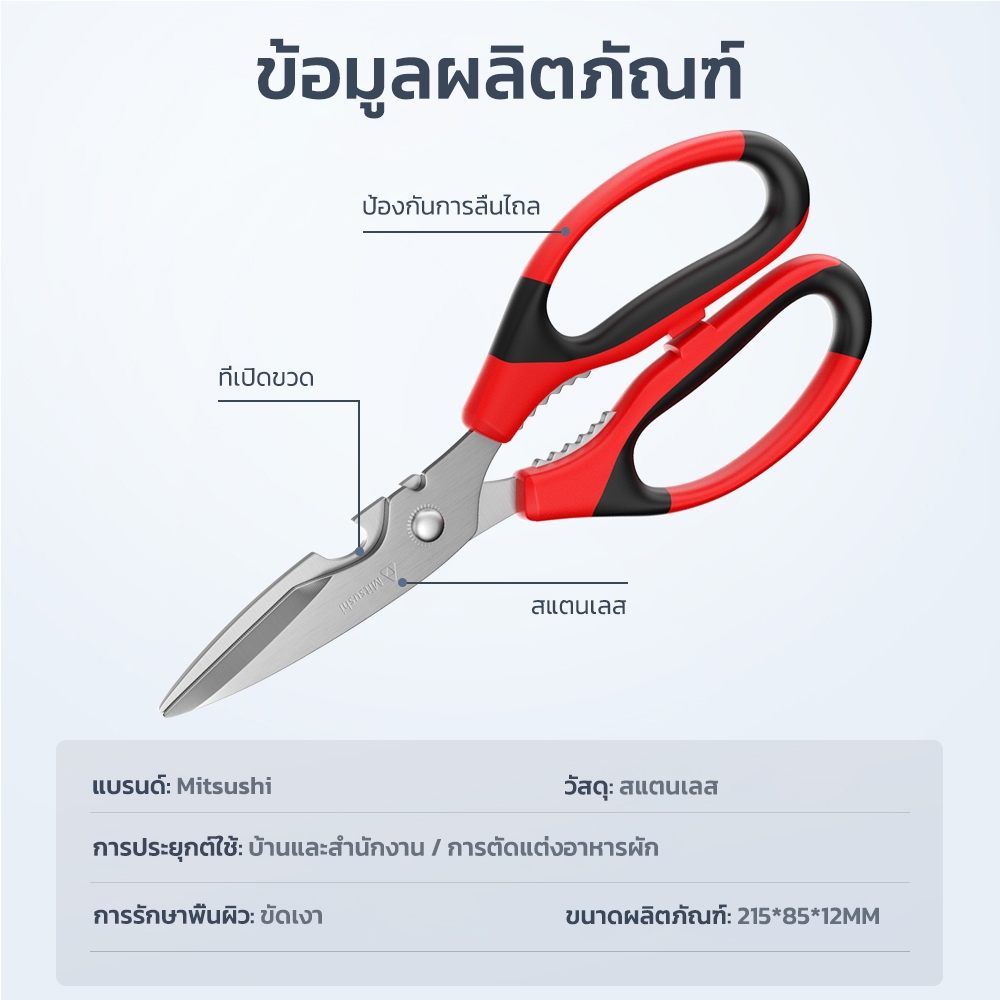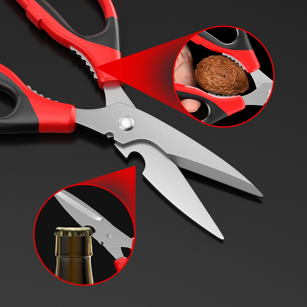Mitsushi กรรไกร 8 นิ้ว กรรไกรตัดอาหาร กรรไกรอเนกประสงค์ แกะเปลือกผลไม้ ตัดไก่ ขอดเกล็ดปลา