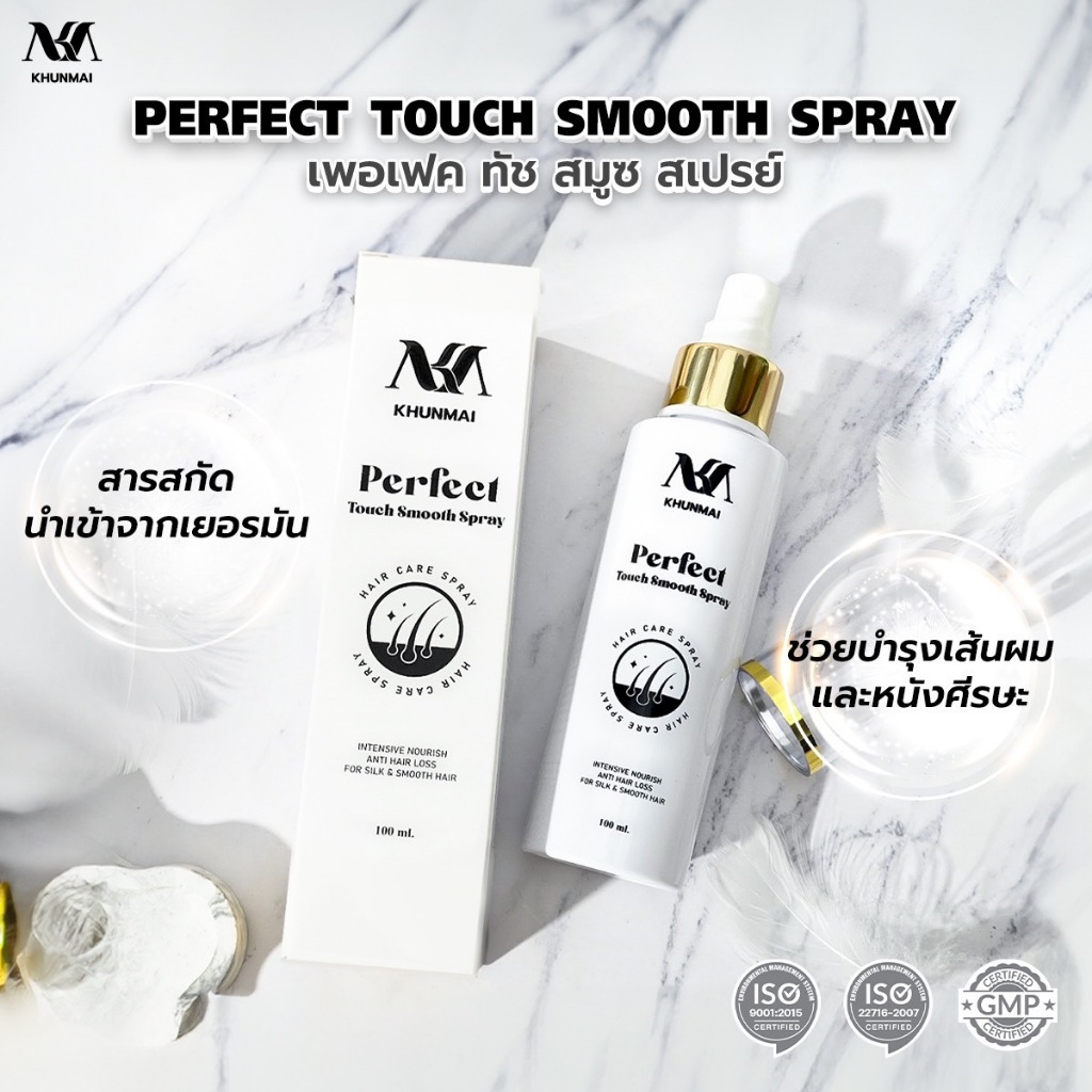 Khunmai Brand สเปรย์คุณใหม่ สเปรย์ ลดผมร่วง แก้ผมบาง (1ขวด) Perfect Touch Smooth Spray ขนาด 100 ml.