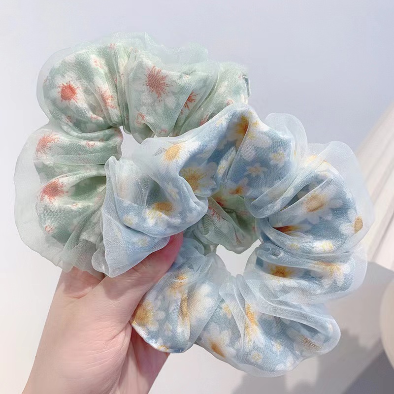 สไตล ์ ใหม ่ Double-Layer Organza ดอกไม ้ Scrunchy แหวนผม Fairy Gauze Classy ผมหางม ้ าเชือกหัวดอกไม ้