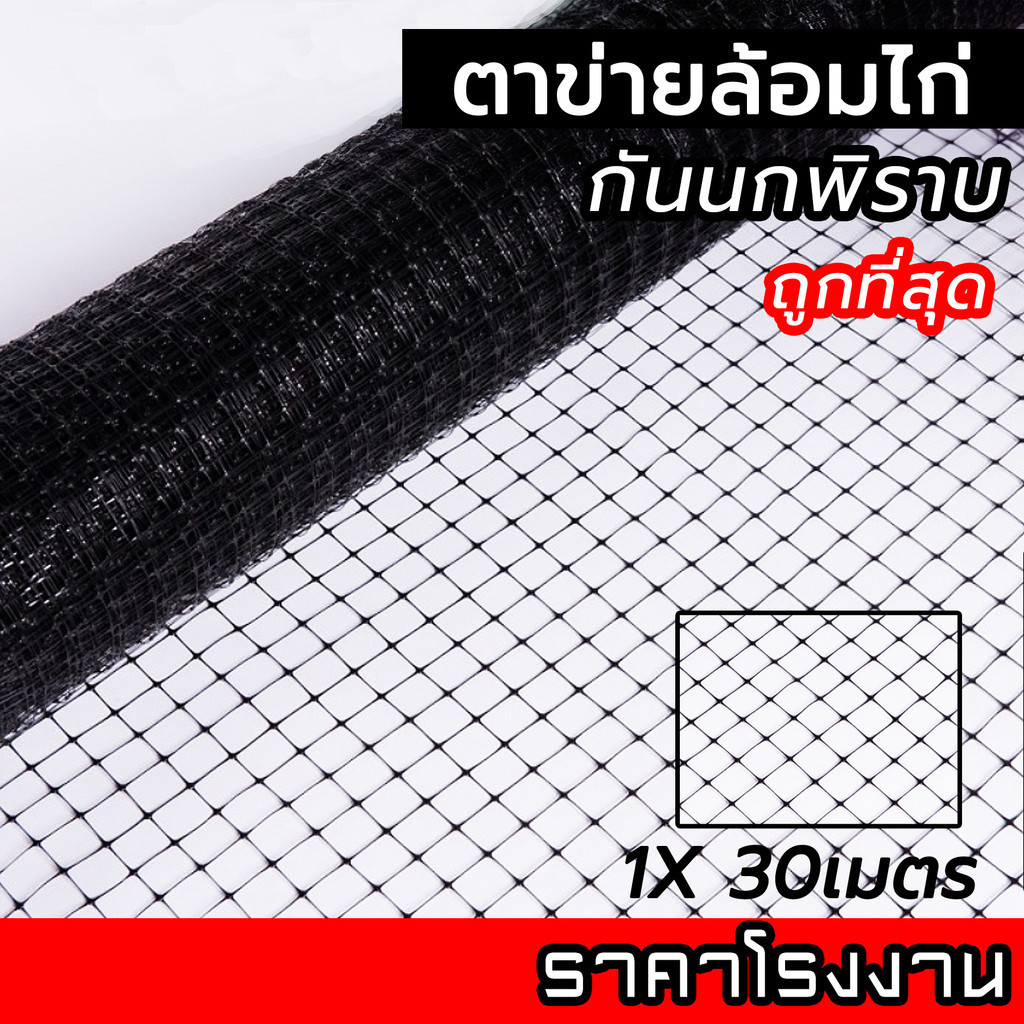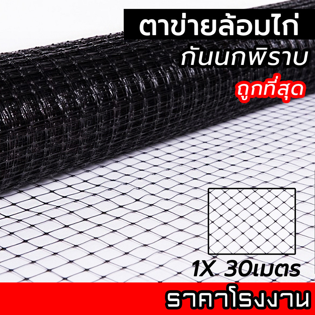 ตาข่ายล้อมไก่ ตาข่ายกันนกพิราบ 30ม. เกรดA สีดำ สีเทา ตาข่ายพลาสติก กรงไก่ ไล่นกพิราบ ป้องกันนกพิราบ เอ็นล้อมไก่ กันนก