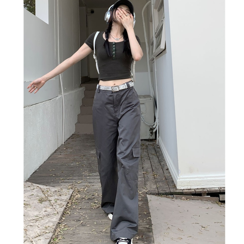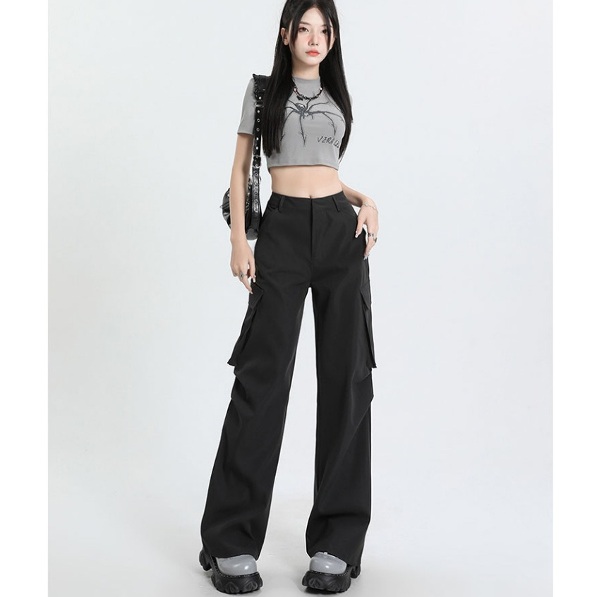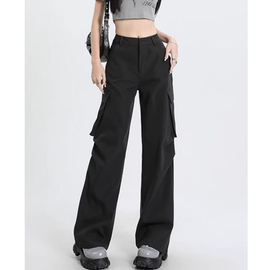 Hotgirl พร้อมส่งจากกทม ✨สีดำกางเกงคาร์โก้ผู้หญิง Cargo pant🌸ชุดเอี๊ยมแฟชั่นย้อนยุคอเมริกันสำหรับผู้หญิง ประเภททรัมเป็ต