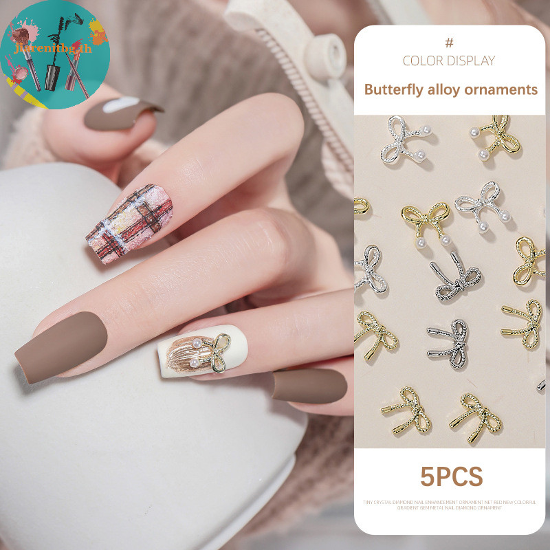 Renbg ริบบิ้นโบว์ อัลลอย 3D (4 แบบ) สําหรับตกแต่งเล็บ 5 ชิ้น