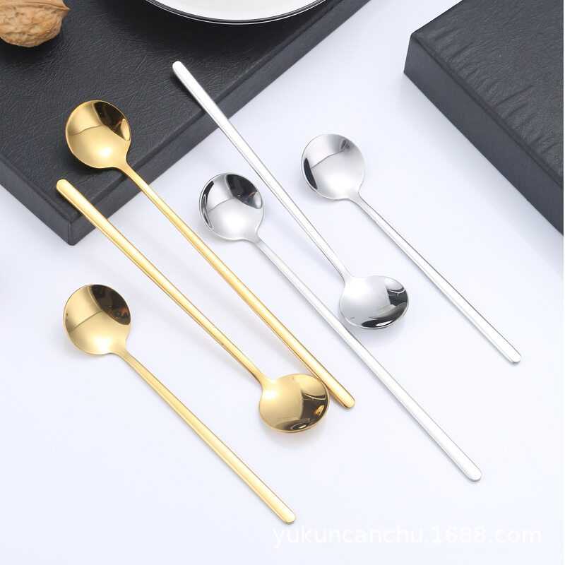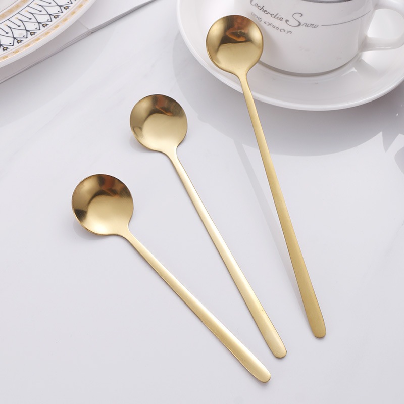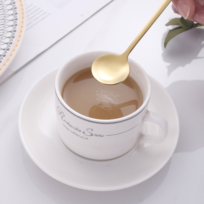 ถ้วยช้อนขนมหวานถ้วยชาประณีตก้านช้อนกาแฟกวนลักษณะสูงเหล็กกล้าไร้สนิมขนาดเล็กช้อนทองช้อนซุป Ins