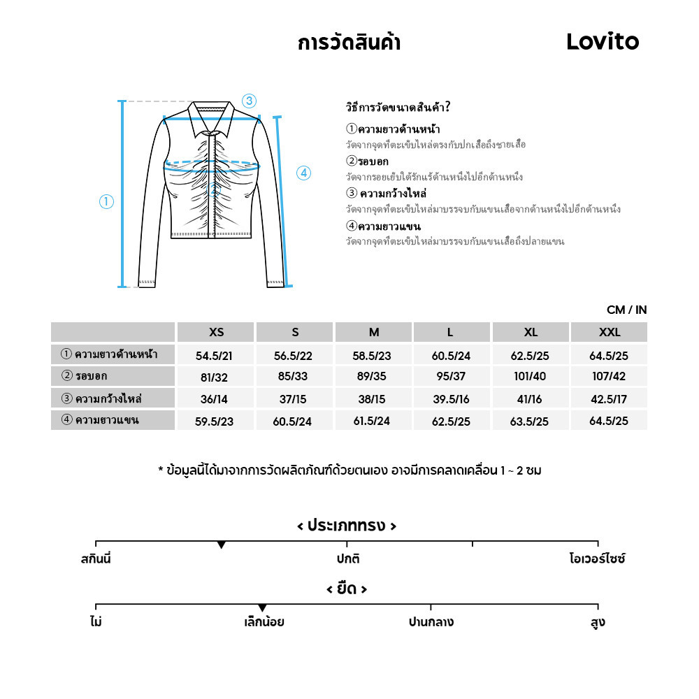 ... ✅บทนำโลวิโต้ Lovito เป็นแบรนด์เกิดใหม่ที่เชื่อมั่นในพลังของเด็กผู้หญิง โดยมุ่งมั่นที่จะนำเสนอทางเลือกเสื้อผ้าที่ทันสมัยและราคาไม่แพงสำหรับสไตล์ ความต้องการ และอัตลักษณ์ที่แตกต่างกัน เราเชื่อว่าแฟชั่นควรจะสนุกสนาน ปลดปล่อย และทำให้คุณรู้สึกดี ท้ายที่สุดแล้ว เครื่องประดับที่ดีที่สุดสำหรับทุกลุคคือความมั่นใจในตนเอง ✅หมายเหตุการซื้อ โปรดดูความสูงและแผนภูมิขนาดก่อนซื้อ มีความแตกต่าง 2-3% ตามการวัดด้วยตนเอง รูปภาพสินค้าทั้งหมดในร้านนี้เป็นภาพถ่ายจริง 100% เนื่องจากแสงและหน้าจอที่แตกต่างกัน ความแตกต่างของสีเล็กน้อยและข้อผิดพลาดที่แท้จริงจึงถือเป็นเรื่องปกติ ติดตามร้านค้าของเราและค้นพบสินค้าใหม่และข้อเสนอที่ดีที่สุดสำหรับคุณ!! หากคุณมีคำถามใด ๆ พูดคุยกับเราแล้วเราจะตอบกลับโดยเร็วที่สุด😊