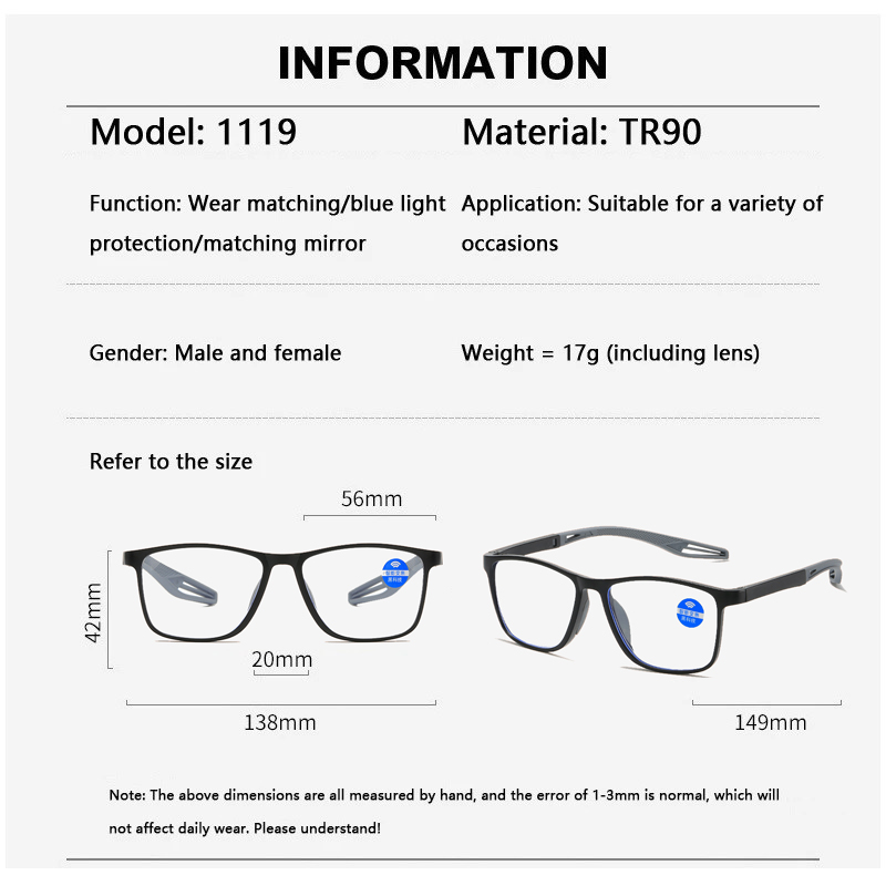 Sporty TR90 แว่นตาอ่านหนังสือ น้ําหนักเบาพิเศษ ป้องกันแสงสีฟ้า แฟชั่นสําหรับผู้ชาย และผู้หญิง เหมาะกับการเล่นกีฬา