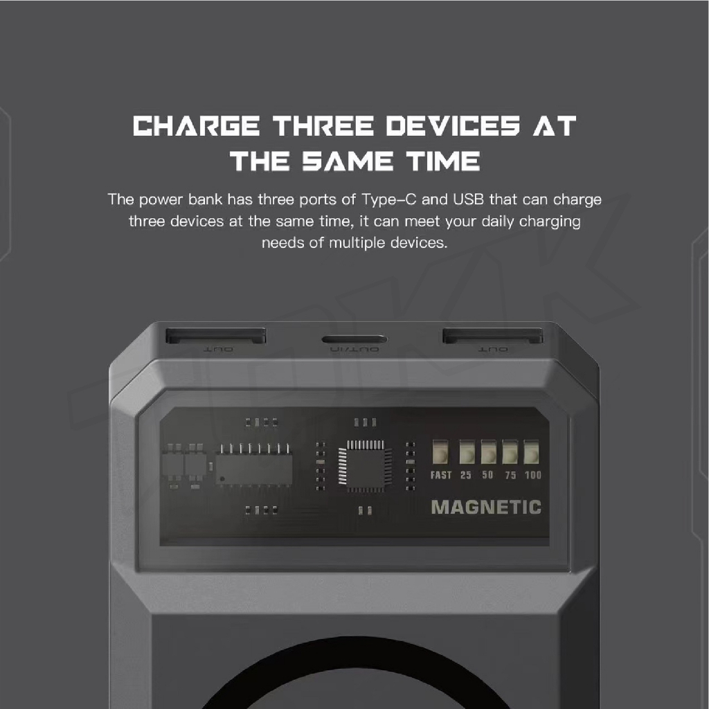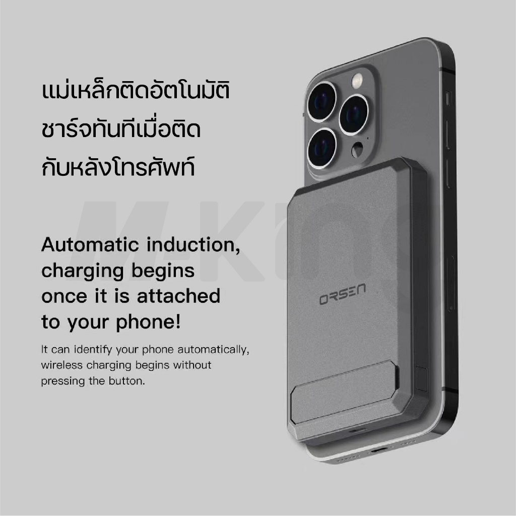 Orsen Eloop รุ่น EW54 คุณสมบัติสินค้า ・ แบตเตอรี่สำรอง MagCharge Magnetic ความจุ 10000 mAh ・ ความจุมากกว่า MagCharge Magnetic Battery Pack ทั่วไป ในขนาดที่ใกล้เคียงกัน ・ สำหรับ ใช้สำหรับ Phone 12 / 13 สามารถใช้ MagCharge Magnetic โดยไม่ต้องใส่เคส ・ ระบบแม่เหล็กยึดแน่น ไม่หลุด พกพาได้สะดวกยิ่งขึ