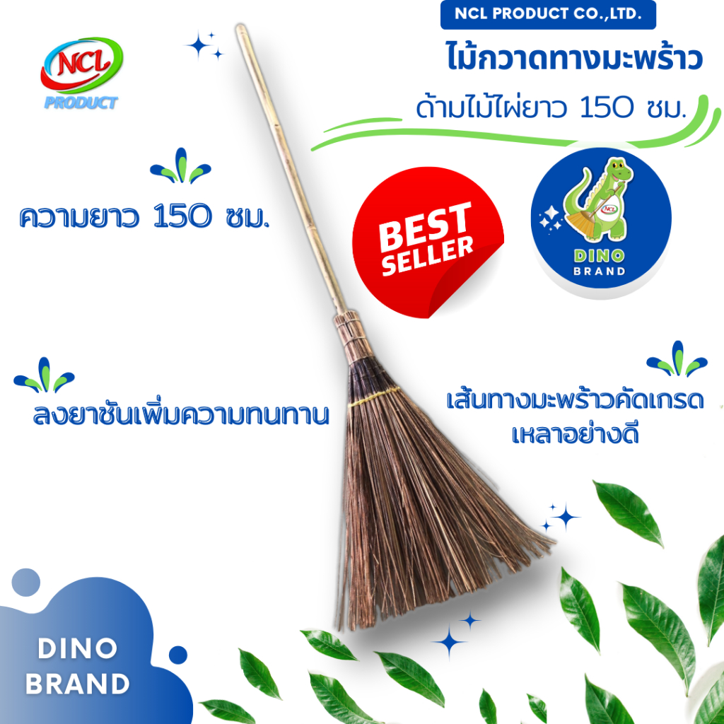ไม้กวาดทางมะพร้าว ด้ามยาว ความยาวรวม 150 ซม. DINO BRAND