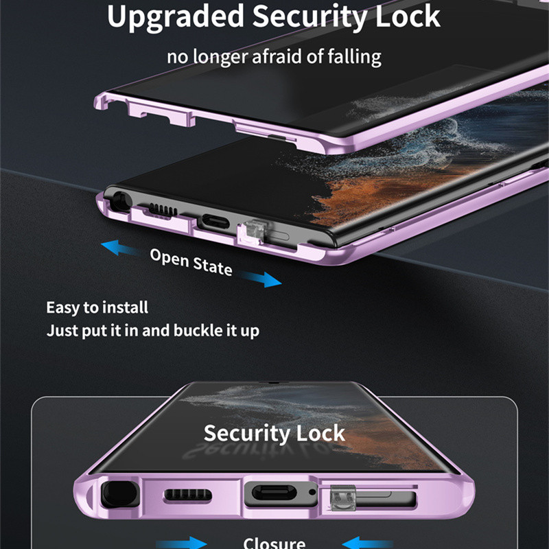 เคสโทรศัพท์มือถือกระจกนิรภัยแข็ง แบบแม่เหล็ก สองด้าน ด้านหน้า และด้านหลัง 360 องศา สําหรับ Samsung Galaxy S23 S24 S22+ S22plus Ultra