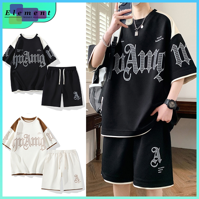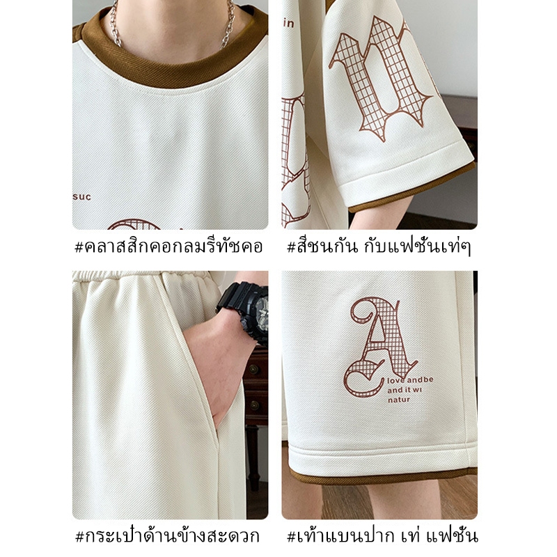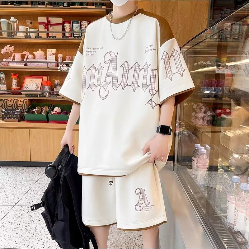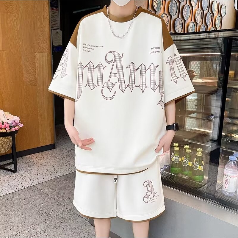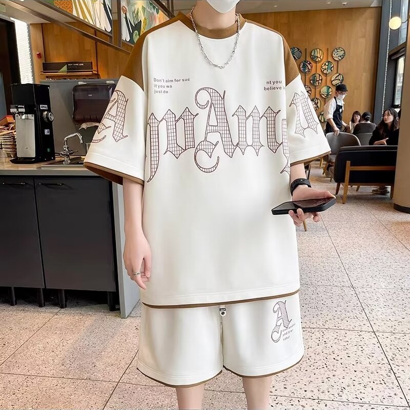 พลัสขนาดแฟชั่นชุดกีฬาผู้ชายฤดูร้อนจับคู่ชุดเย็นหล่อแขนสั้นเสื้อยืดหลวมห้าจุดกางเกงถนนสวมใส่