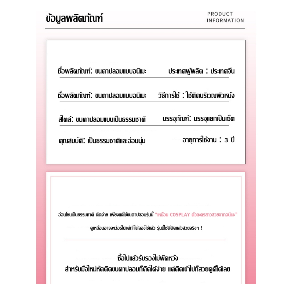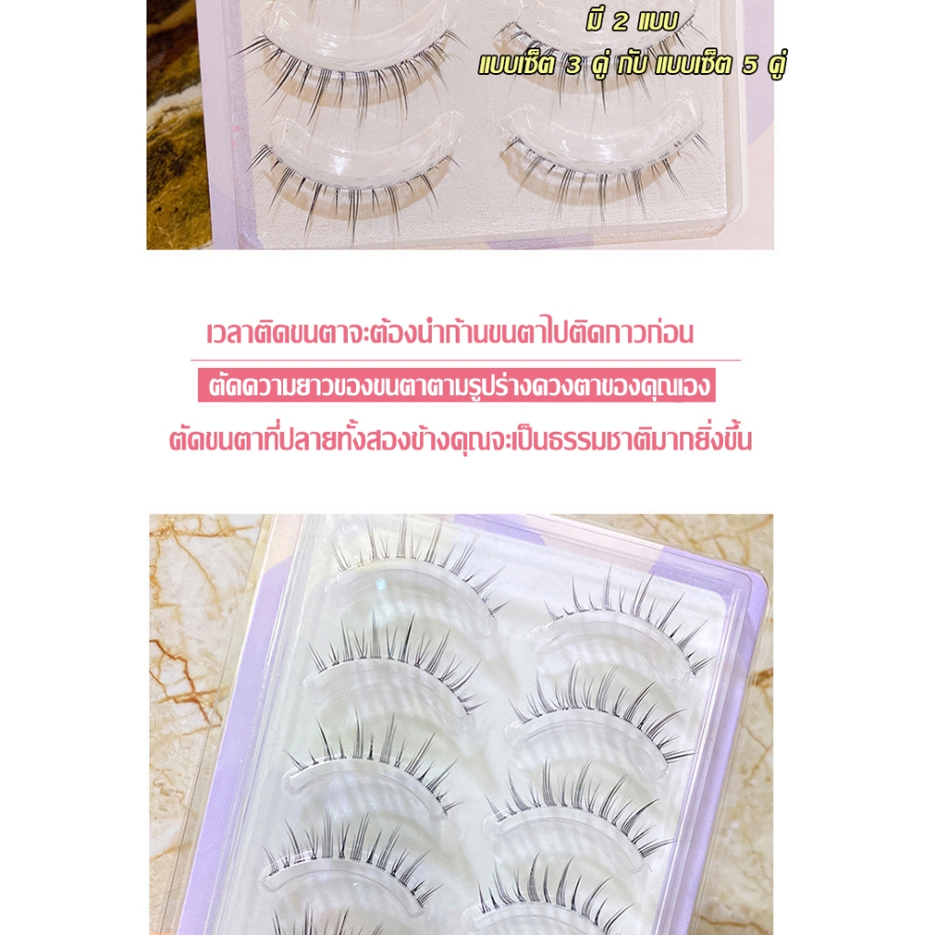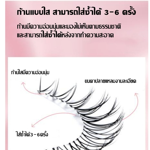 ... ษณะการทำงาน: Mengjieshangpin® ขนตาปลอมสไตล์ก้านบางโปร่งใสสามารถซ่อนได้อย่างสมบูรณ์ ก้านนุ่มและเรียวซึ่งสวมใส่สบาย การแต่งตาของไทยเซ็กซี่และป่าและขนตาที่โค้งงอทำให้ดวงตาของคุณเต็มไปด้วยเสน่ห์ ผลิตภัณฑ์สามารถใช้ซ้ำได้ 7-10 ครั้ง หมายเหตุ: 1. เพื่อผลลัพธ์ที่ดีขึ้นโปรดดัดขนตาก่อนใช้ 2. โปรดให้ข้อมูลการวัดเบี่ยงเบนเล็กน้อย 3. หากสินค้าเสียหายระหว่างการขนส่งโปรดติดต่อเราโดยเร็วที่สุด ติดแล้วล้างด้วยโฟมหรือสบู่ล้างหน้า ปล่อยให้แห้งตามเวลาแล้วเก็บไว้ในกล่องไว้ใช้ต่อครั้งต่อไปได้เลย 1 คู่ ใช้ได้ 4-5 ครั้ง หรือมากกว่านั้น ขึ้นอยู่กับการดูแลรักษา **ทางร้านขอแนะนำว่าไม่ควรใช้ซ้ำเกิน 5 ครั้งนะคะ เพื่อป้องกันการติดเชื้อดีกว่าค่ะ ***วิธีการติด*** ลูกค้าควรศึกษาวิธีการติดที่ Youtube เพื่อความสวยงามและถูกต้อง อย่าลืมตัดแกนส่วนหัวและส่วนหางออกเพื่อความเนียนยิ่งขึ้น *ใช้ซ้ำได้ 4-5 ครั้งหรือมากกว่านั้นขึ้นอยู่กับการบำรุงรักษา *ติดแล้วเนียนมาก ขึ้นอยู่กับฝีมือแต่ละบุคคล *ก่อนติดควรวัดที่ขนาดตาของตนเองก่อนแล้วตัดหัว-หางตามต้องการ #ขนตาปลอมy #ขนตาปลอม 3d #ขนตาปลอมธรรมชาติ #ขนตาปลอม 5d #ขนตาปลอม ช่อ #ขนตา 3d ขนมิ้ง #ขนตาปลอมยาว #ขนตา #ขนตาปลอมy #กาวขนตาปลอม #ขนตาราคาถูก #ขนตาปลอมตัว y #ขนตาปลอม #ขนตาปลอม3d #ขนตาปลอมปีศาจน้อย #ขนตาปลอมแบบช่อ