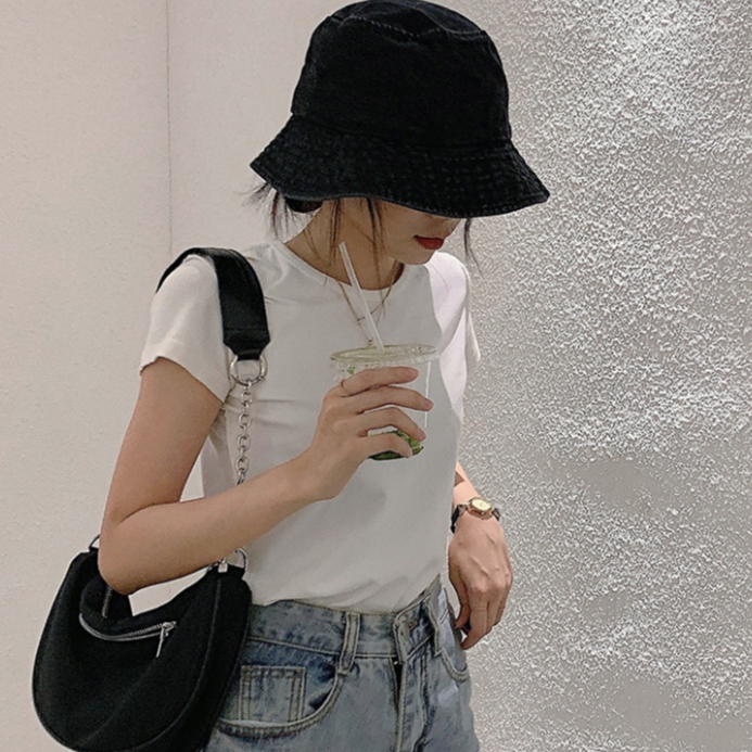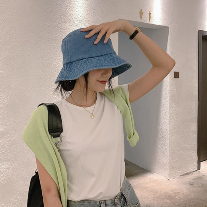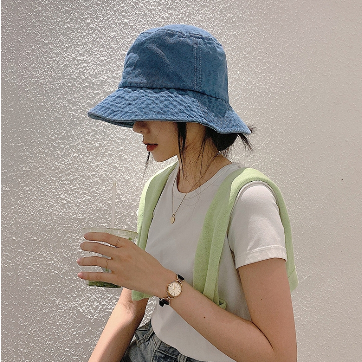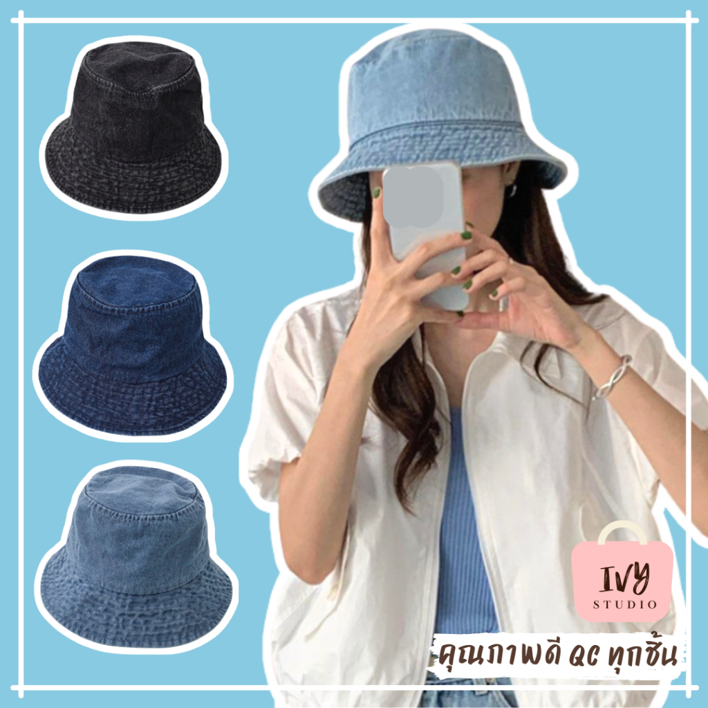 💕ivy หมวกบัคเก็ต ผ้ายีนส์ (B86) หมวกแฟชั่นเกาหลีสำหรับผู้หญิง กันแดด
