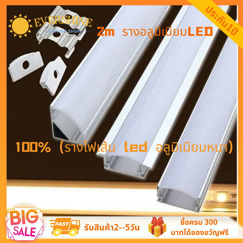 2ม2ม2ม!!! รางอลูมิเนียมสำหรับไฟLED รางไฟ 2 เมตรรางใส่ไฟ LED พร้อมฝาปิด รางอลูมิเนียมแบบเข้ามุม(ตัวV) / แบบฝัง