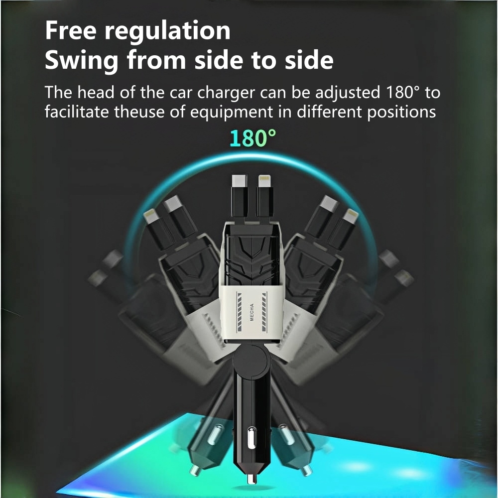 car charger หัวชาร์จในรถ ชาร์จในรถ ที่ชาร์จในรถยนต์ fast charging สายยืดหดได้ Type-C Lightning usb charger มุมปรับได้ A1