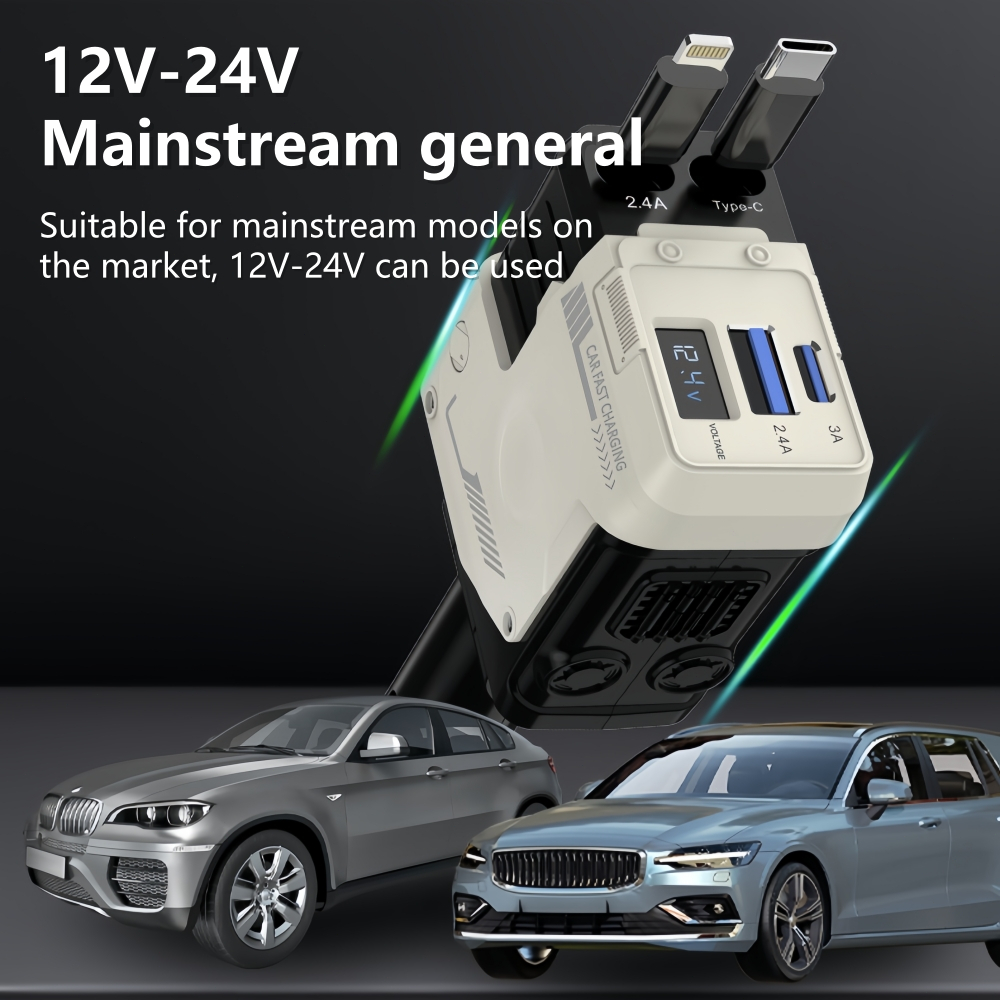 ที่ชาร์จในรถยนต์นี้มีอินเทอร์เฟซเอาต์พุตคู่ สายชาร์จแบบยืดหดได้ขนาด 80 ซม. และการแสดงแรงดันไฟฟ้าในรถยนต์แบบเรียลไทม์ สามารถชาร์จ iPhone และอุปกรณ์ USB-C อื่นๆ ได้ในเวลาเดียวกัน สายชาร์จใช้งานได้สะดวกและจัดเก็บง่าย นอกจากนี้ยังตรวจสอบสถานะพลังงานในรถยนต์เพื่อให้แน่ใจว่าได้รับประสบการณ์การชาร์จที่ปลอด