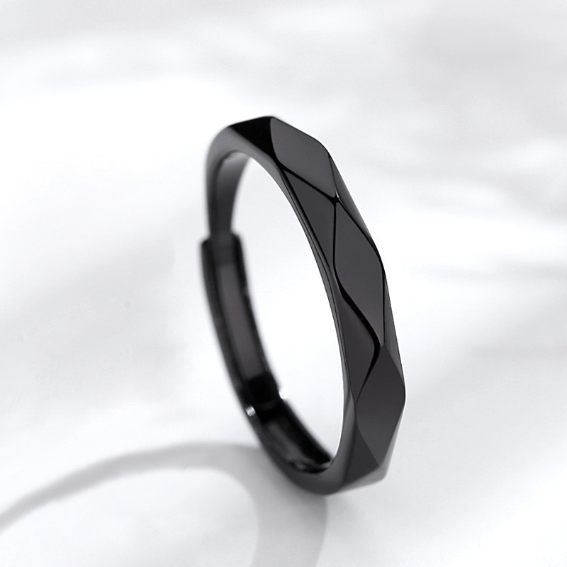 แหวนเงิน S925 ประดับเพชร ปรับได้ สีดํา สีขาว ของขวัญวันวาเลนไทน์ สําหรับผู้ชาย และผู้หญิง
