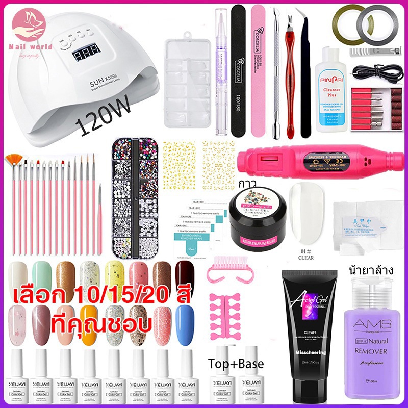 ชุดทําเล็บเจล120W/54Wเครื่องอบเล็บ ชุดทำเล็บ มี5/10/15/สีให้เลือก+เบสทอป+ท็อปเจล+15MLต่อเล็บโพลีเจล+เครื่องเจียเล็บไฟฟ้า