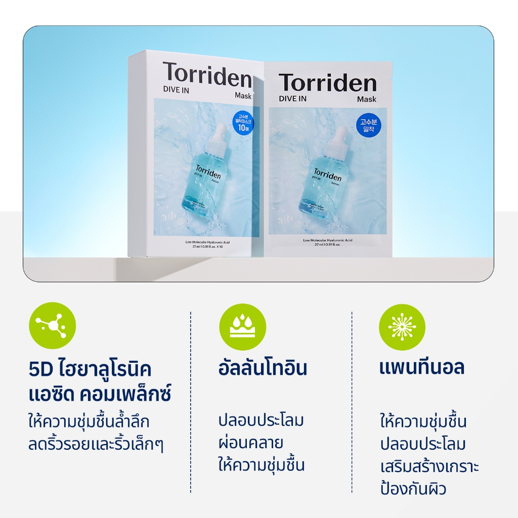 [2 ห่อ][Torriden Official] DIVE IN แผ่นมาร์คหน้าเซรั่มกรดไฮยาลูโรนิกโมเลกุลต่ำ, แผ่นมาร์คหน้าชีทชุ่มชื้นสำหรับใช้เป็นประจำทุกวัน, 20 แผ่น