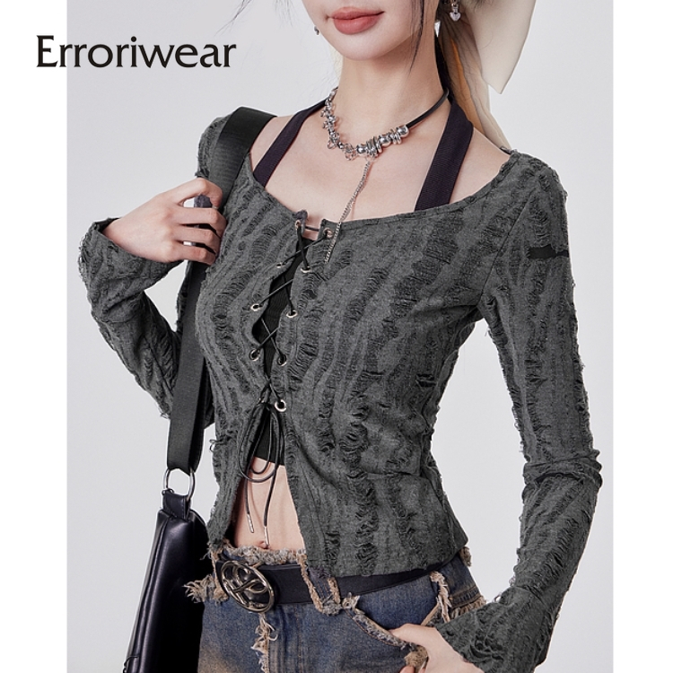 Errokiwear เสื้อยืดผู้หญิง 2024 แฟชั่น Tie Dying แขนยาว Slim Fit Causal Halter Tops