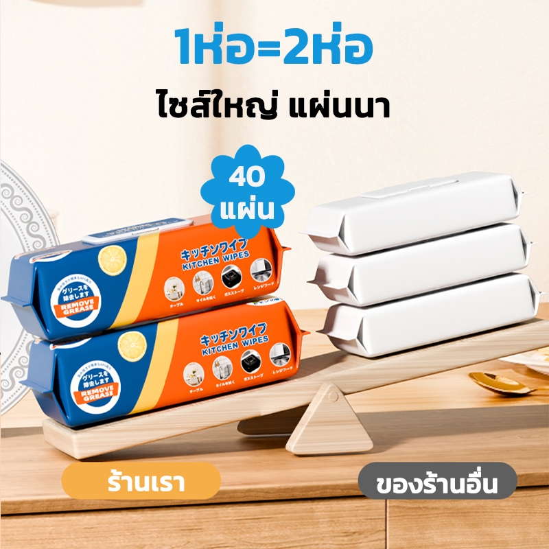 ทิชชู่เปียกห้องครัว แผ่นทำความสะอาดครัว ทิชชู่เปียกทำความสะอาด ขจัดคราบมัน เช็ดเตา เช็ดโตะ ล้างจาน มีฟองในตัว กลิ่นเลมอน