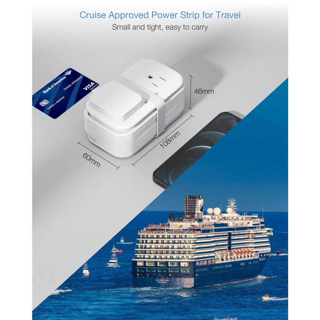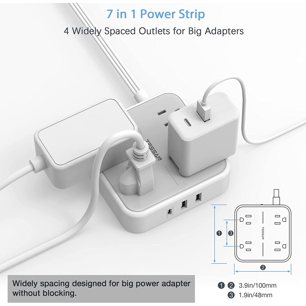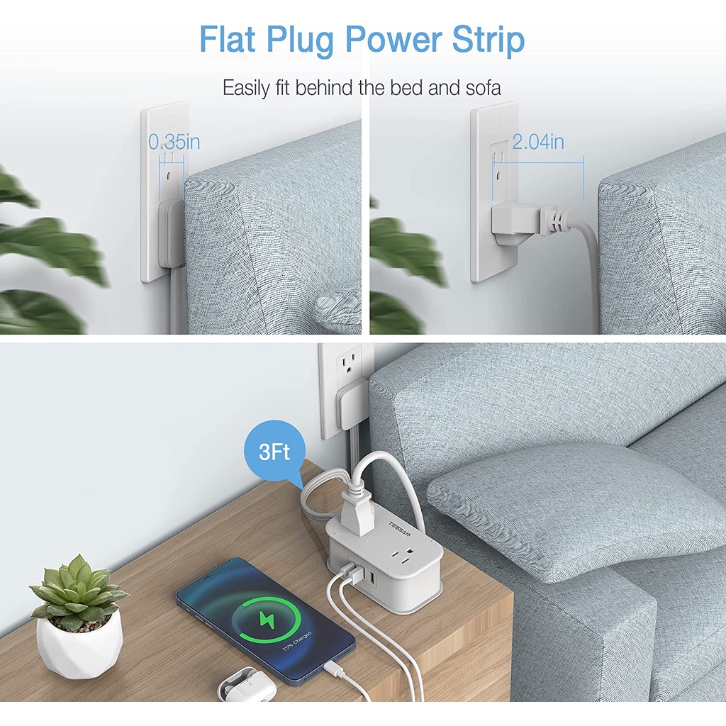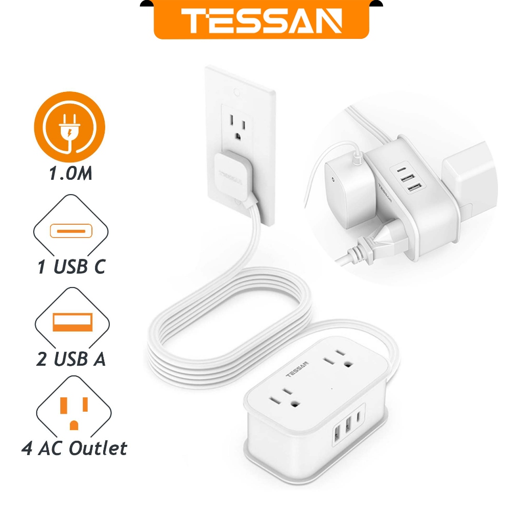 Tessan ซ็อกเก็ตต่อขยาย แบบบางพิเศษ พร้อม USB Type C อเนกประสงค์ ทนทาน คุณภาพสูง