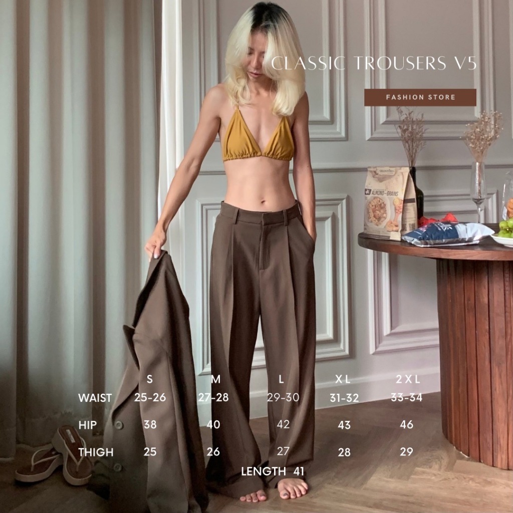 💛Classic trousers -V5 (808) ราคา 850 บาท 💛ไซส์ S : เอว 25-26” สะโพก 38” รอบต้นขา 25” รอบปลายขา 20” ความยาว 41” M : เอว 27-28” สะโพก 40” รอบต้นขา 26” รอบปลายขา 21” ความยาว 41” L : เอว 29-30” สะโพก 42” รอบต้นขา 27” รอบปลายขา 22” ความยาว 41” XL : เอว 31-32” สะโพก 44” รอบต้นขา 28” รอบปลายขา 23”