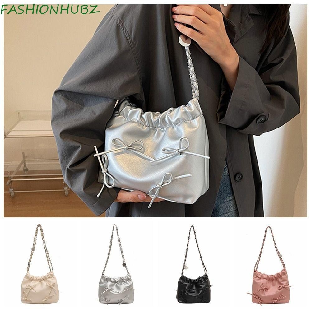 Fashionhubz กระเป๋าสะพายไหล่ หนัง PU ทรงบักเก็ต ประดับโบว์ ขนาดใหญ่ จุของได้เยอะ สไตล์เกาหลี สําหรับผู้หญิง