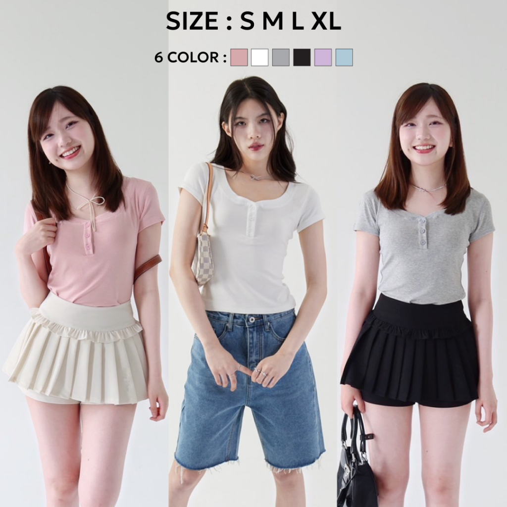 Susii top 🌷🍭 #Bemingtop586 Size S M L XL Colors ขาว / ชมพู / เทา / ม่วง / ดำ / ฟ้า ราคา 320.- เสื้อยืดแขนสั้นผ้านิ่มมมมมมมมมมมมากเลยค่ะ ละมุนสุดๆ ดีเทลกระดุมด้านหน้า 3 เม็ด ใช้งานได้จริงนะคะ สาว Chubby อก เตรียมเฮได้เลยค่ะ รุ่นนี้ใส่ได้เเน่นอน และใส้สวยแน่นอน สีพื้น เทา ขาว ชมพู เเมทได้ห