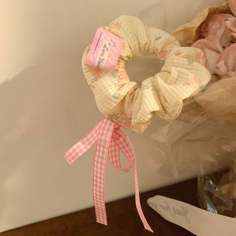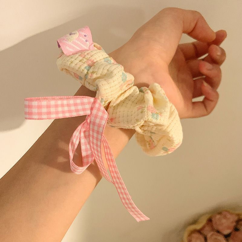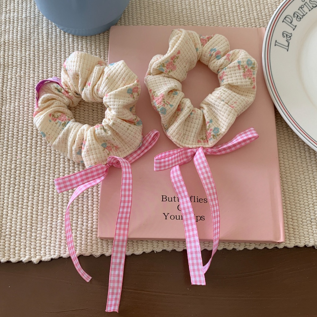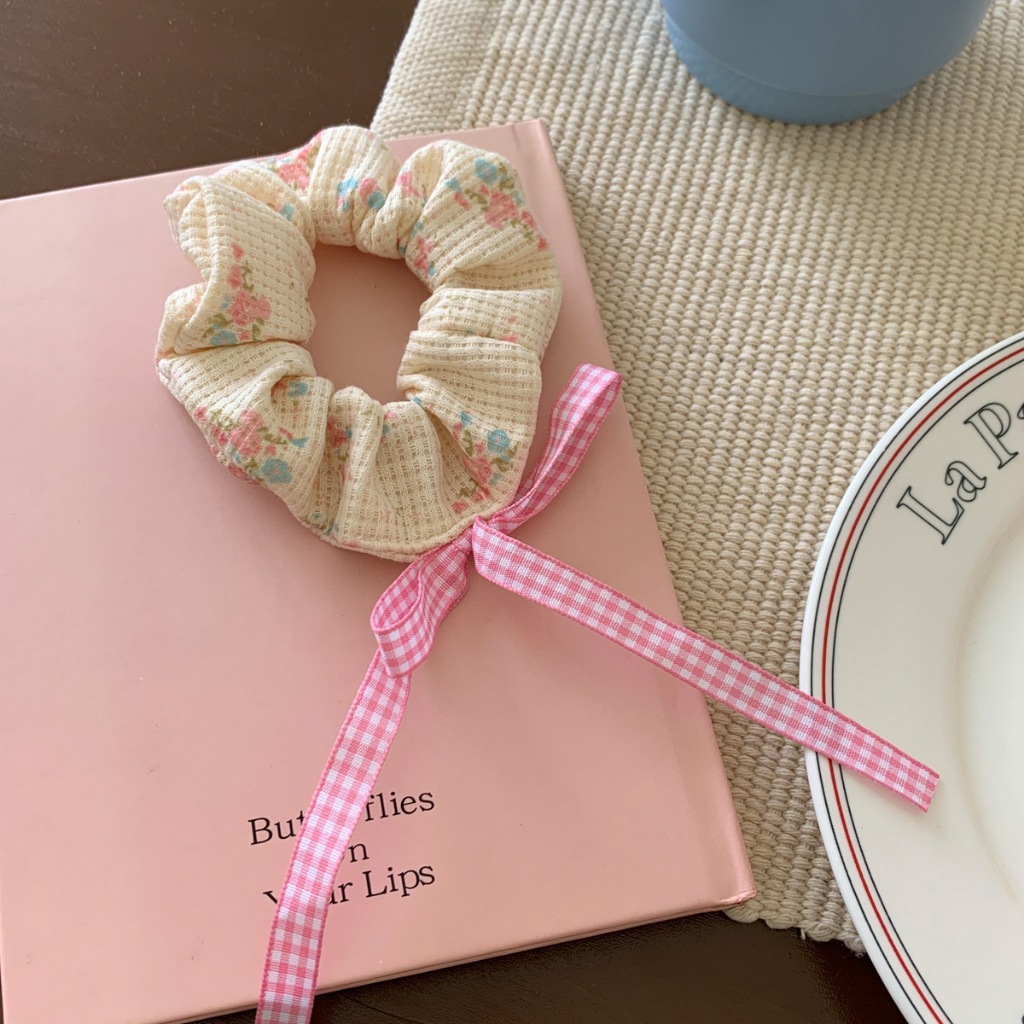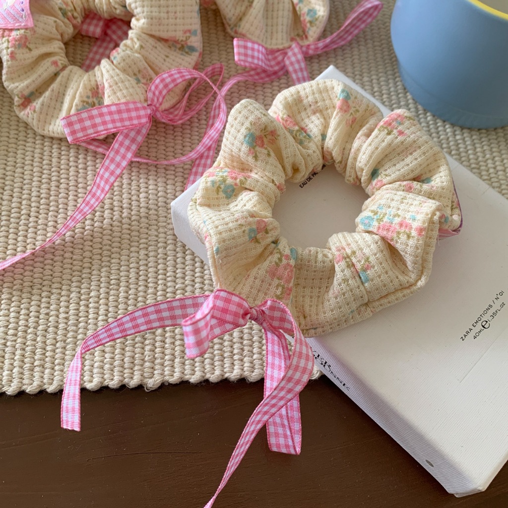 ยางรัดผม รูปวาฟเฟิล ประดับโบว์ ขนาดเล็ก สีชมพู สไตล์บัลเล่ต์ สําหรับผู้หญิง