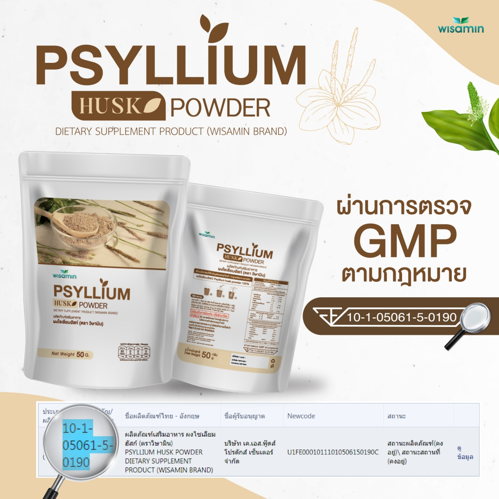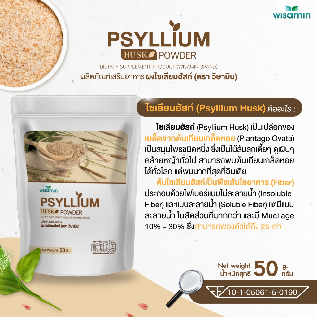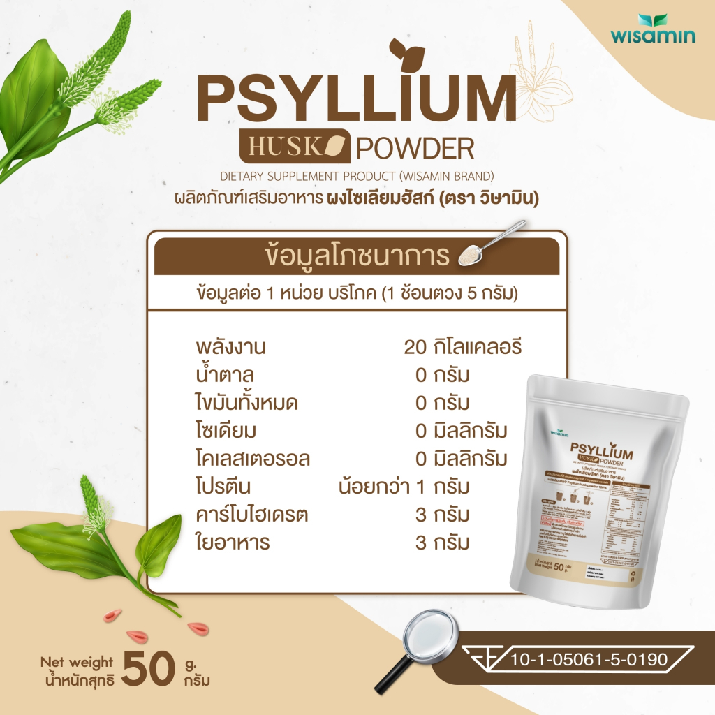 PSYLLIUM HUSK ผงไซเลียมฮัสก์ ผลิตภัณฑ์เสริมอาหารไฟเบอร์ (ตรา วิษามิน) จำนวน 1 ถุง ปริมาณ 50 กรัม