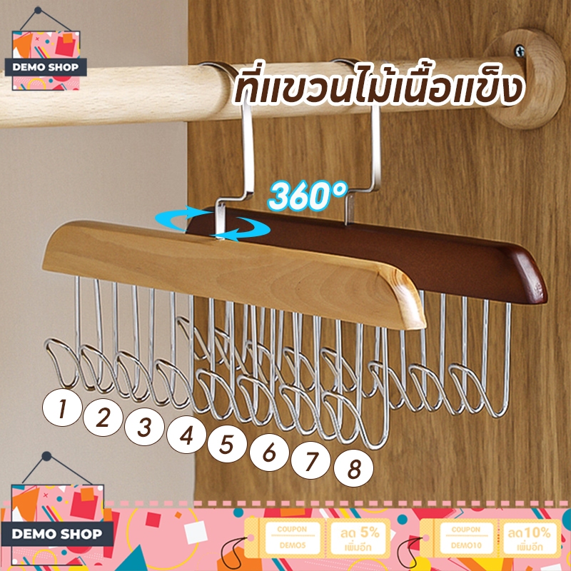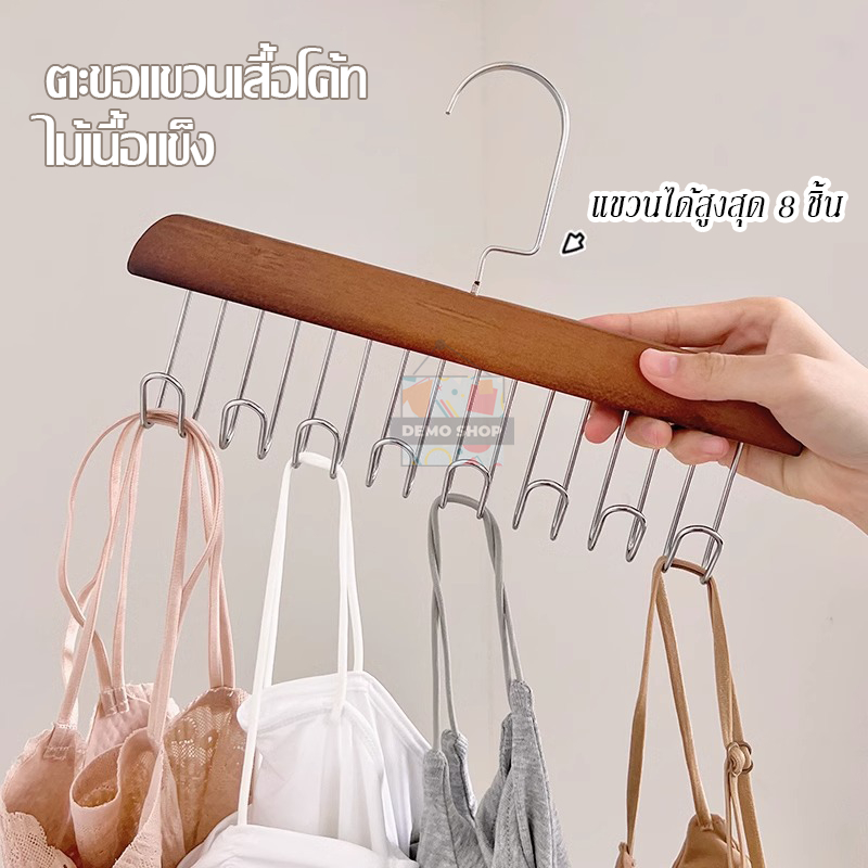 ไม้แขวนเสื้อ 8 ตะขอ ประหยัดพื้นที่ ตู้เสื้อผ้า ที่เก็บเสื้อผ้า เนคไทน์ หมวก จัดระเบียบ กันลื่น