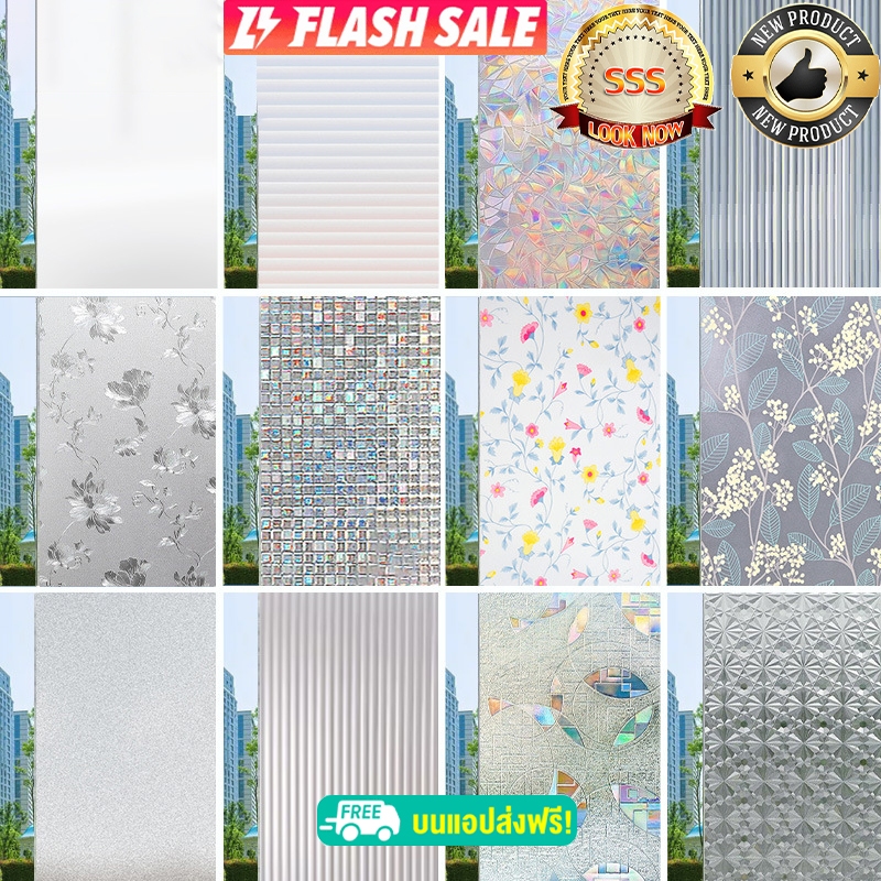 ฟิล์มติดกระจก สูญญากาศPVCและ สติกเกอร์ติดกระจก ฟิล์มติดกระจกบ้าน Glass sticker เครื่องดูดฝุ่นสามารถใช้ซ้ำได้บนกระจก