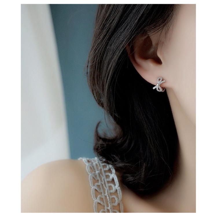 ต่างหูเงินสเตอร์ลิง S925 ประดับโบว์ ทรงกลม เรียบง่าย เครื่องประดับแฟชั่น สําหรับผู้หญิง นักเรียน ของขวัญ
