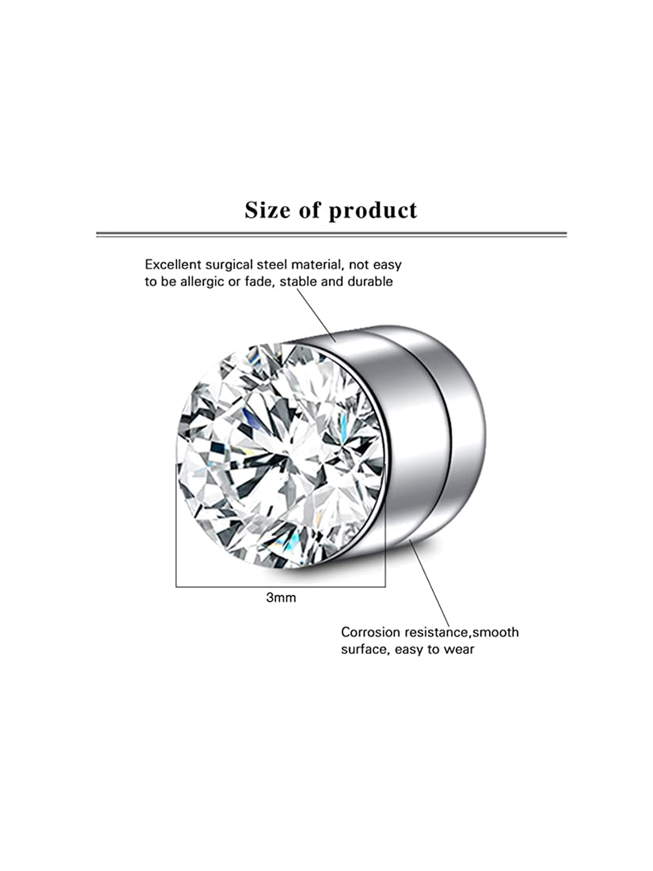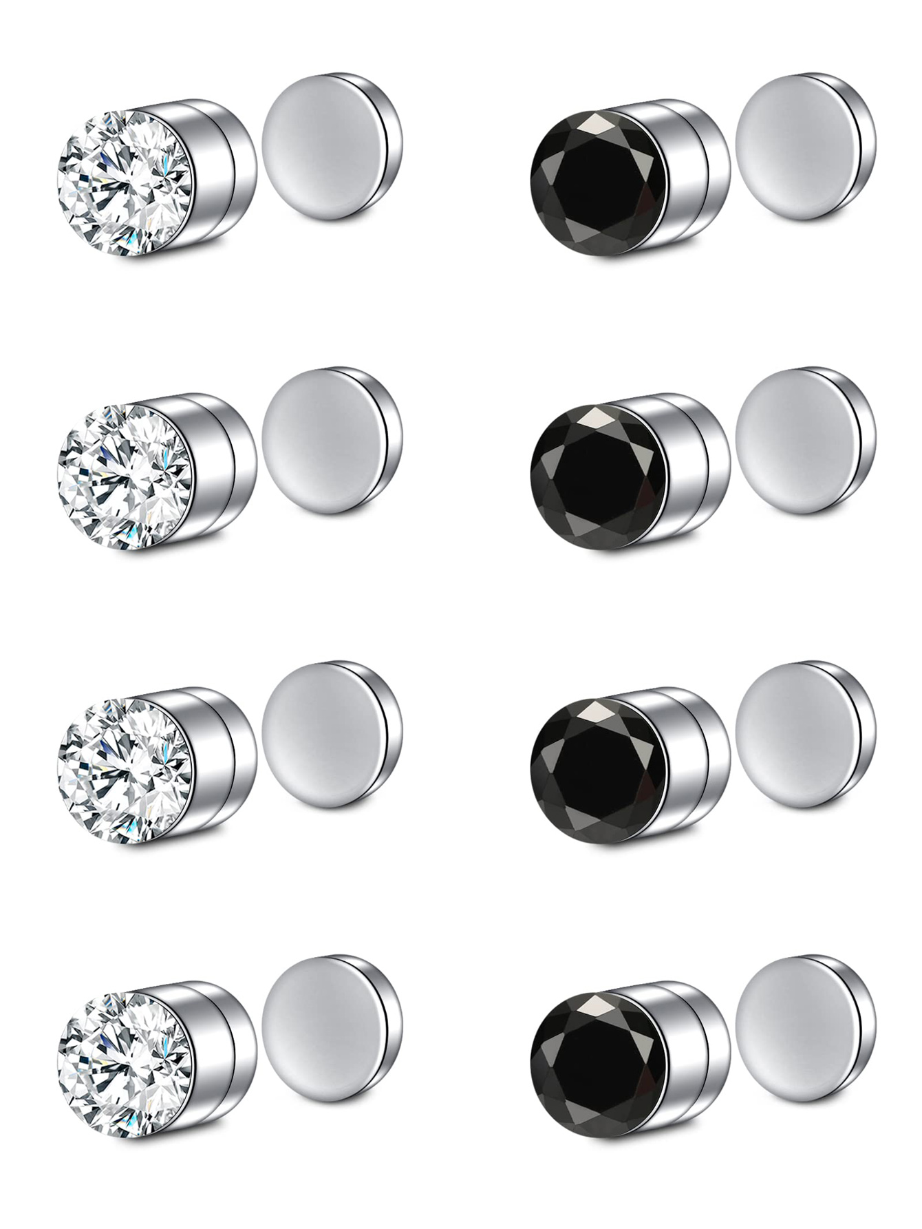 8 ชิ้น สเตนเลส พลอยเทียม แม่เหล็ก ต่างหู แหวนจมูก กระดูกอ่อน กระดุม
